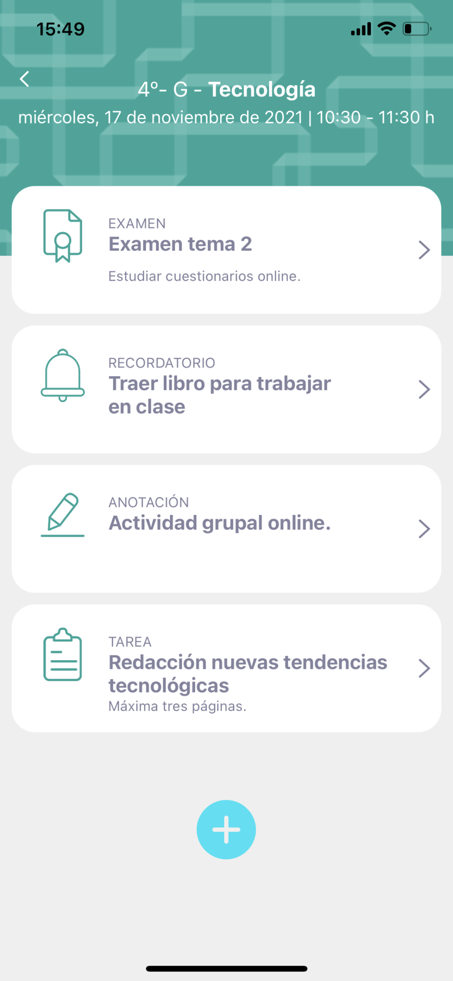 - Programar las clases: crear, editar y/o eliminar tareas, exámenes, recordatorios y anotaciones a los alumnos de tus clases.