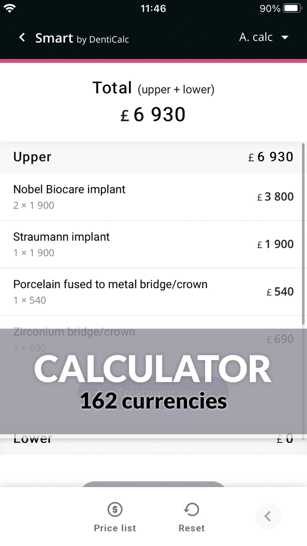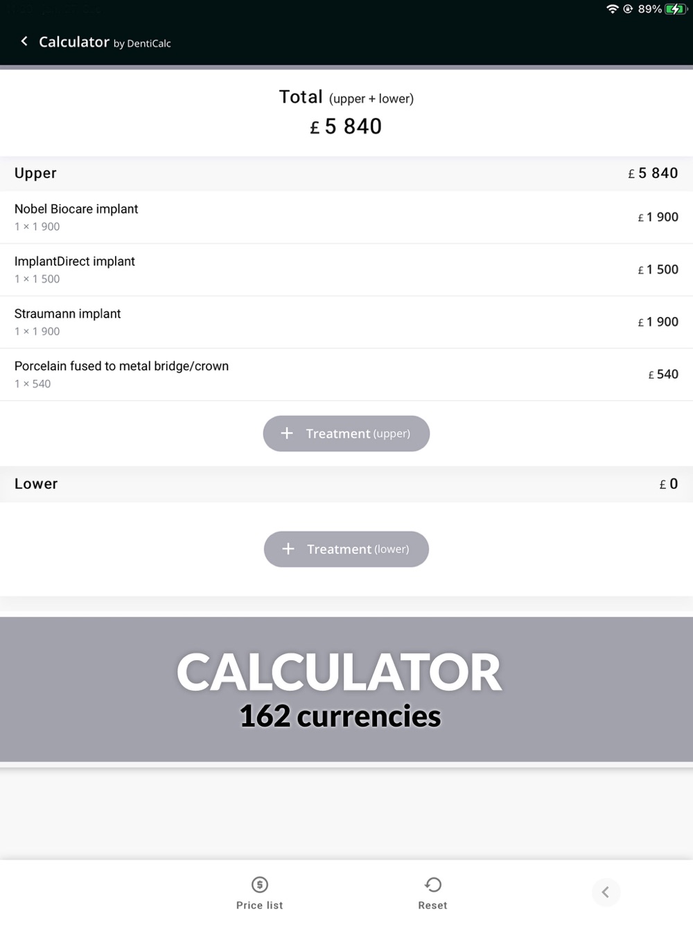 It is a unique calculator that gives estimated treatment prices to patients in seconds. With the personalized price list you can calculate the different treatment options so patients can choose according to their budget. You can add your own prices and further treatments can be added to the pre-set price list. It improves dentist-patient communication.