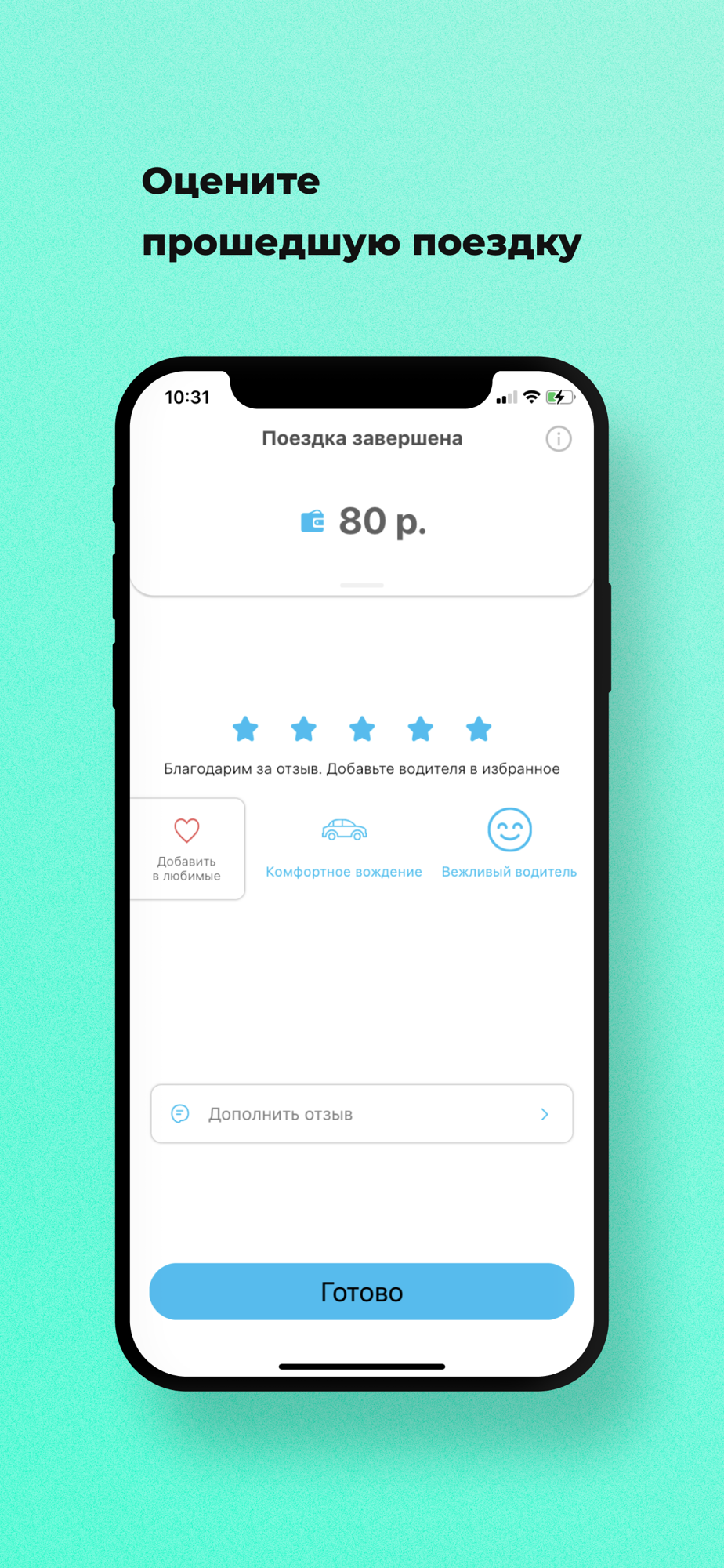 Следите за поездкой на карте. Приложение сообщит время подачи, марку, цвет, номер машины, а также имя водителя.