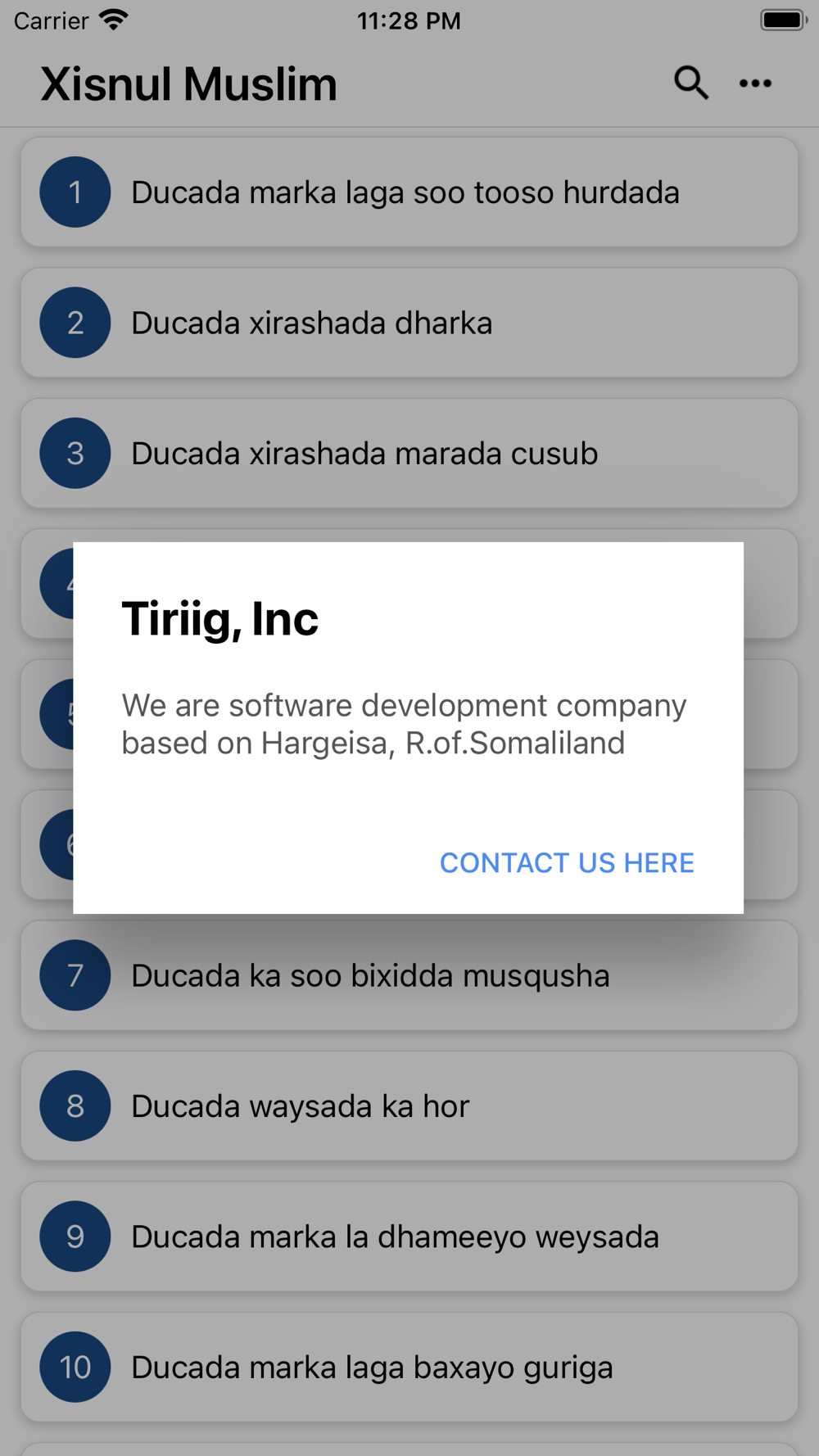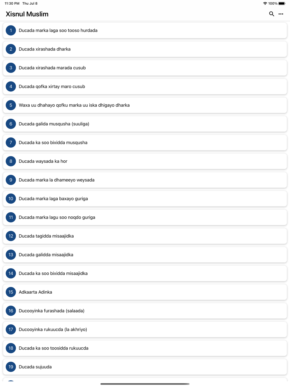 App-kan waxa ku jira Ducooyinka iyo Adkaarta kitaabka Xisnul Muslimka,