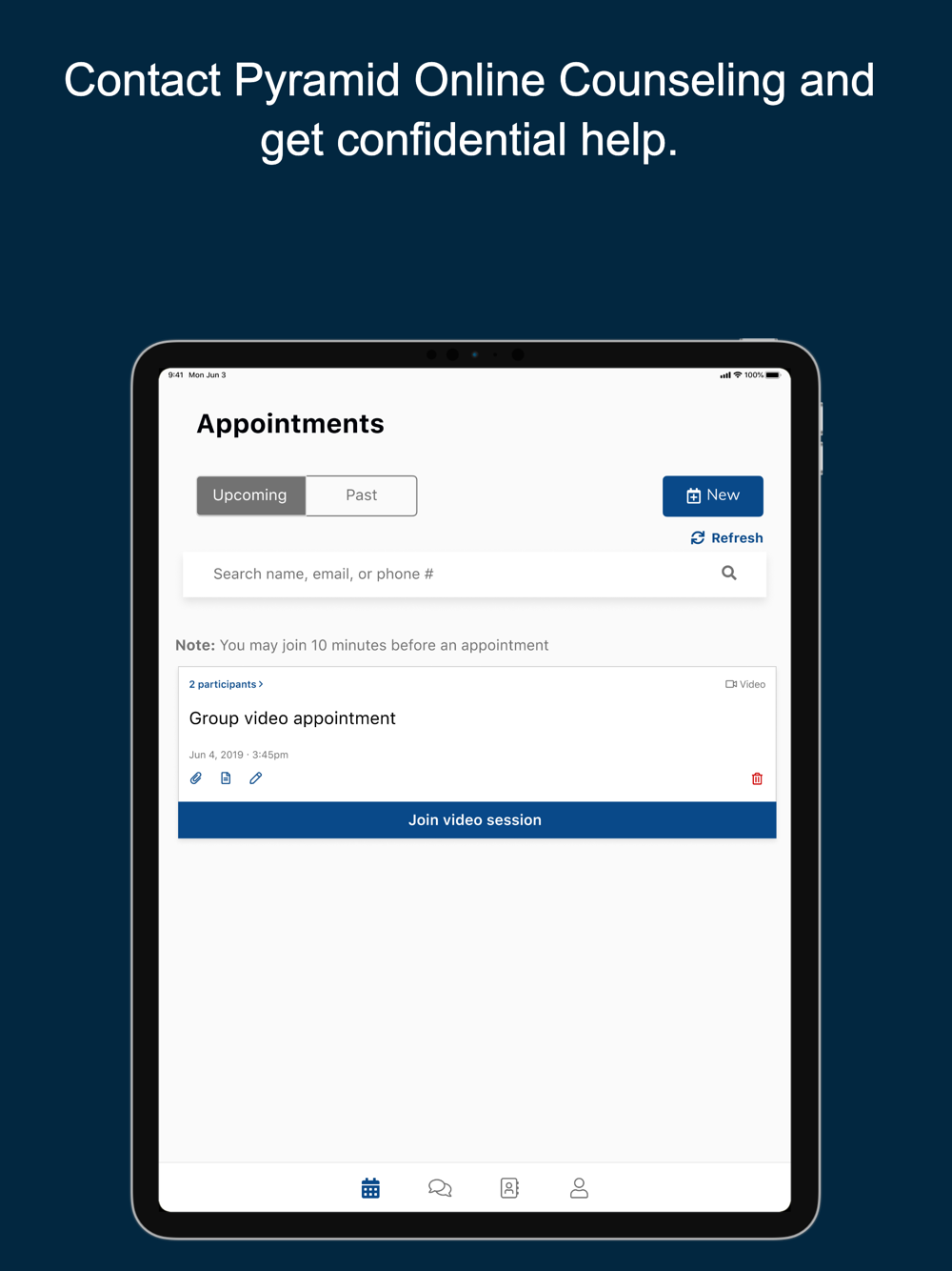 To use this app, you will need an existing patient/client account through Pyramid Online Counseling.