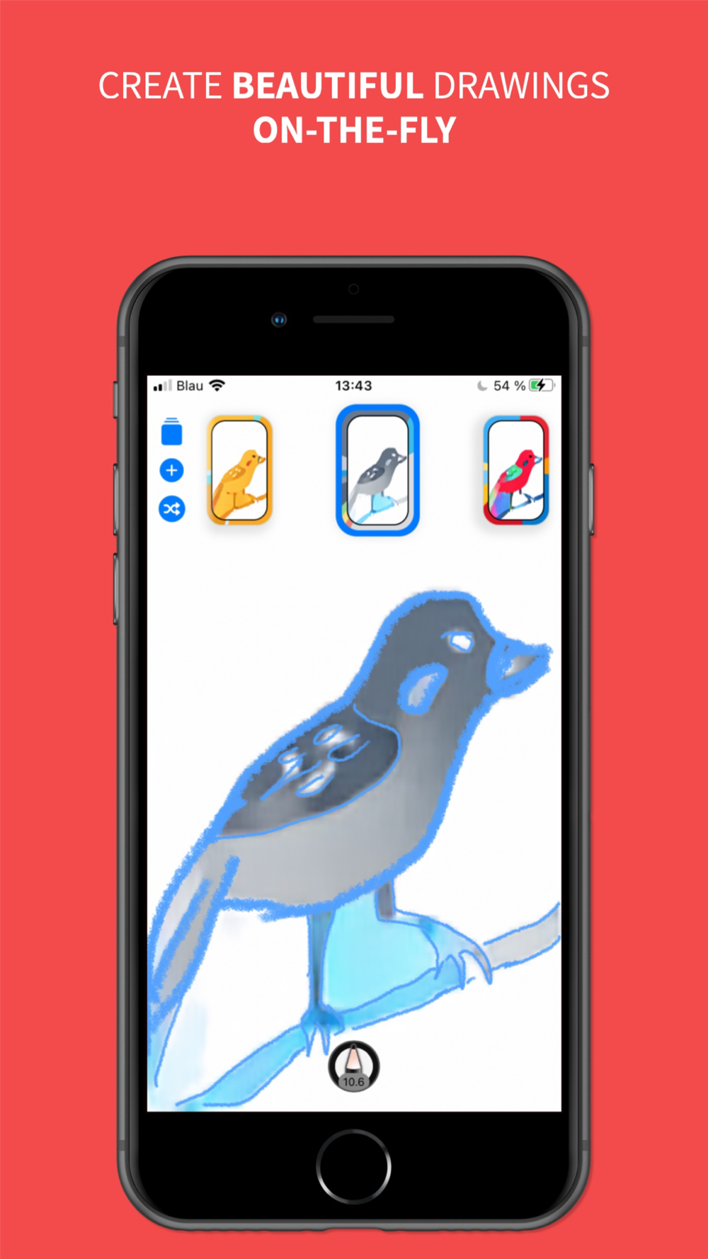 With the help of artificial intelligence coloraid is able to give you numerous color suggestions even while drawing and is therefore able to support you in your creative process.