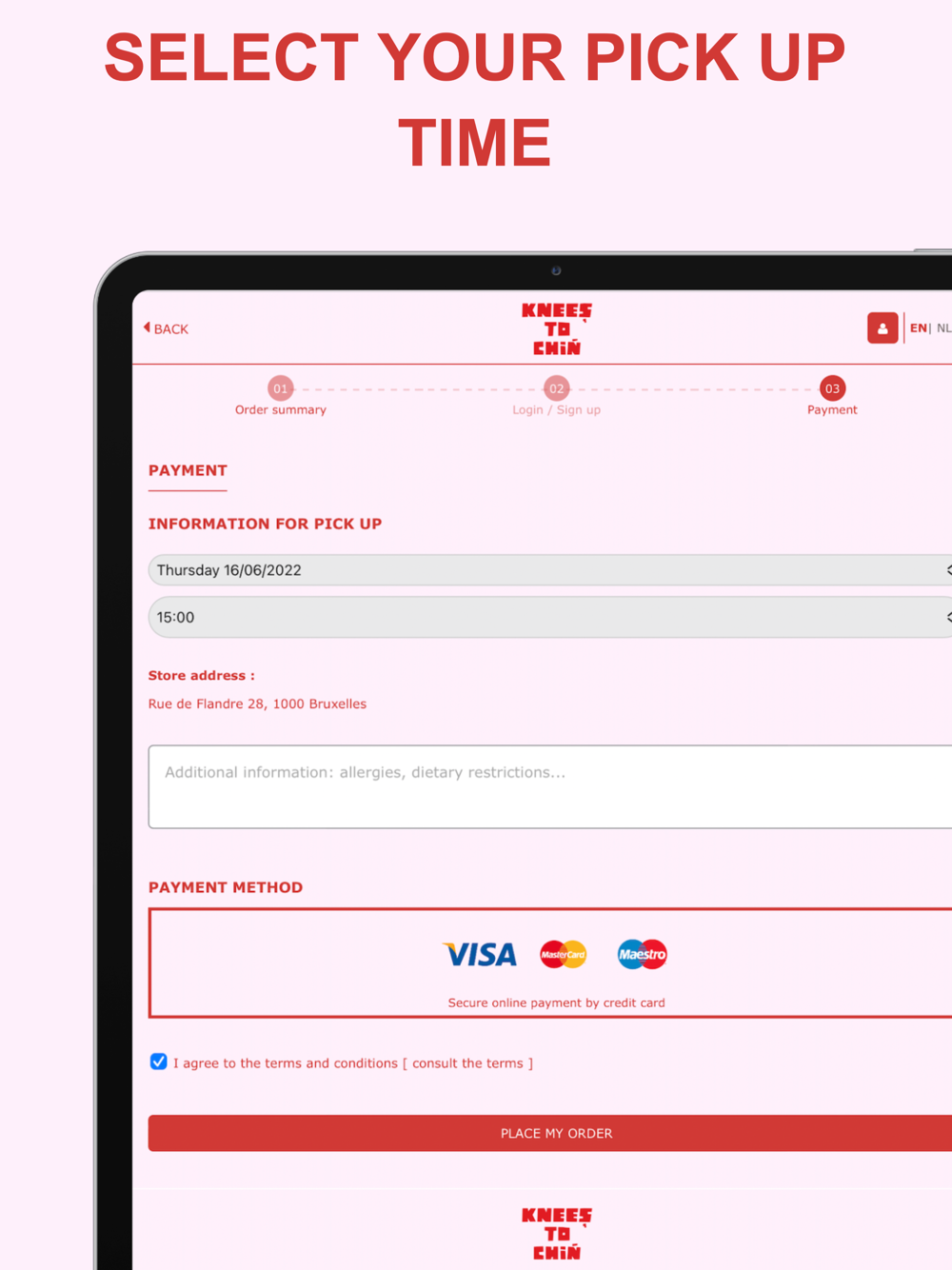 Wherever you are, with the Knees to chin app, you can easily order your favourite ultra fresh and tasty rice paper rolls for lunch or dinner!