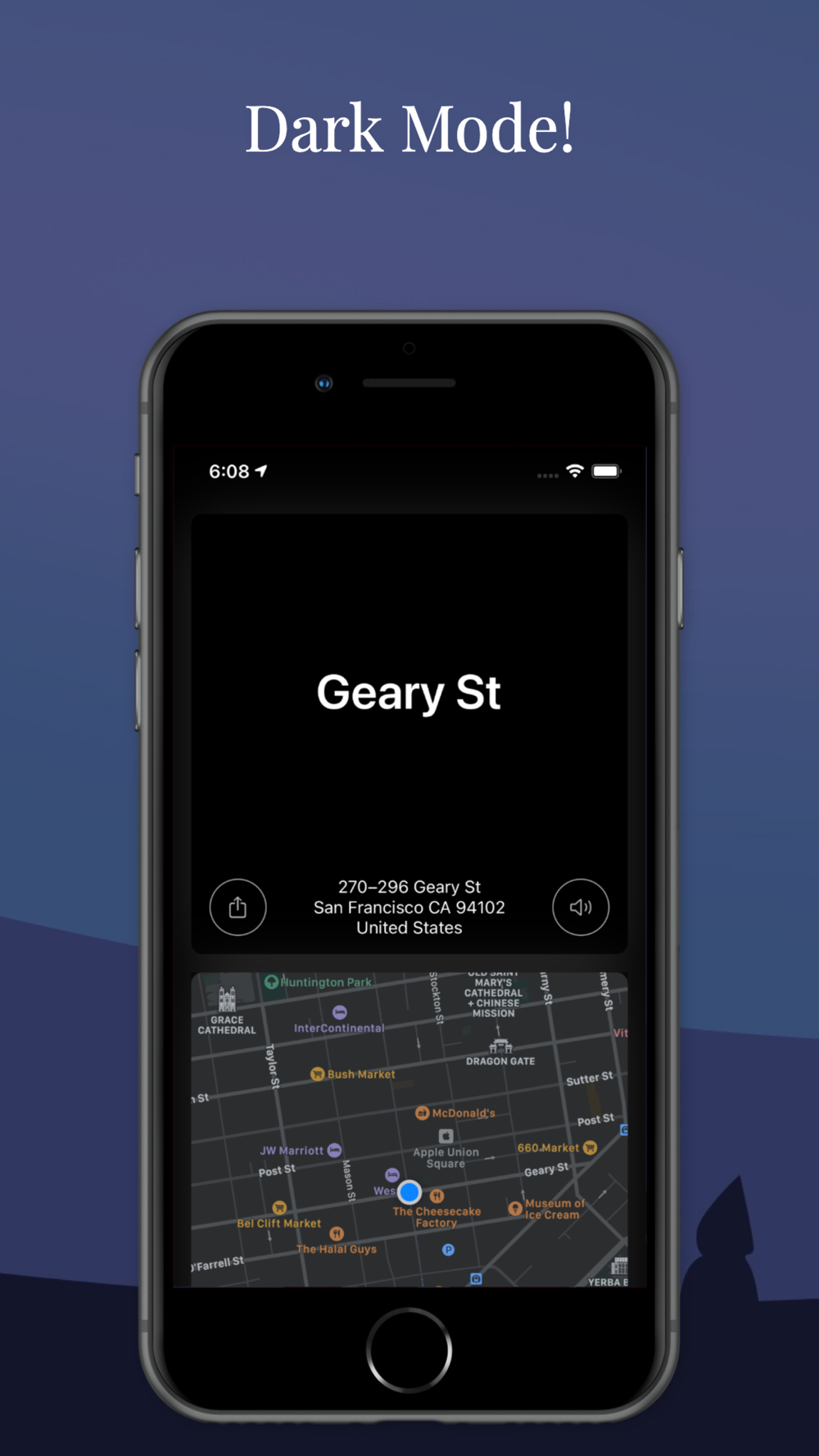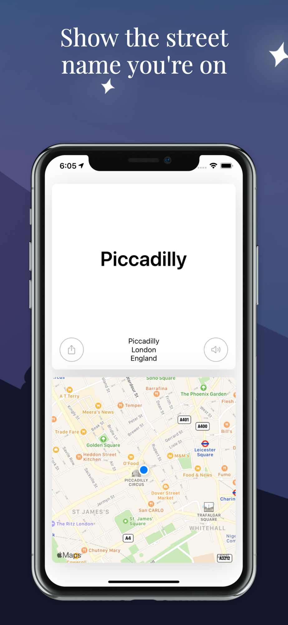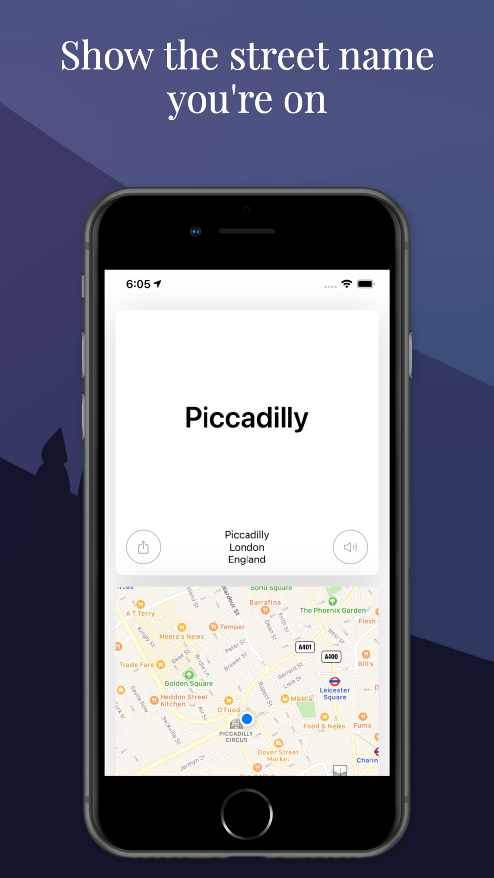WhatStreet is an app that tells you what street you are on and updates the simple view every time it changes. It also speaks out the street name - even in the background mode! No better way to learn the street names around your route.