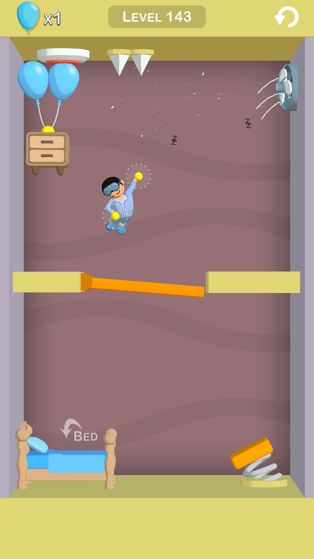 Help The Sleepyhead Character To Jump Into The bed as soon as possible.
