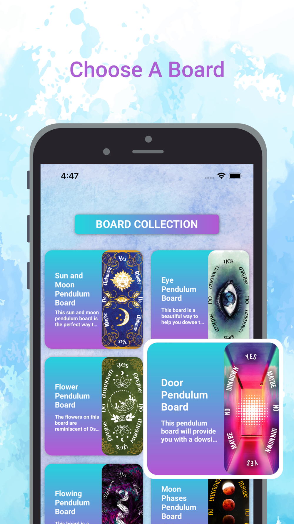 2. Use the different pendulum boards in the app with your own pendulum.