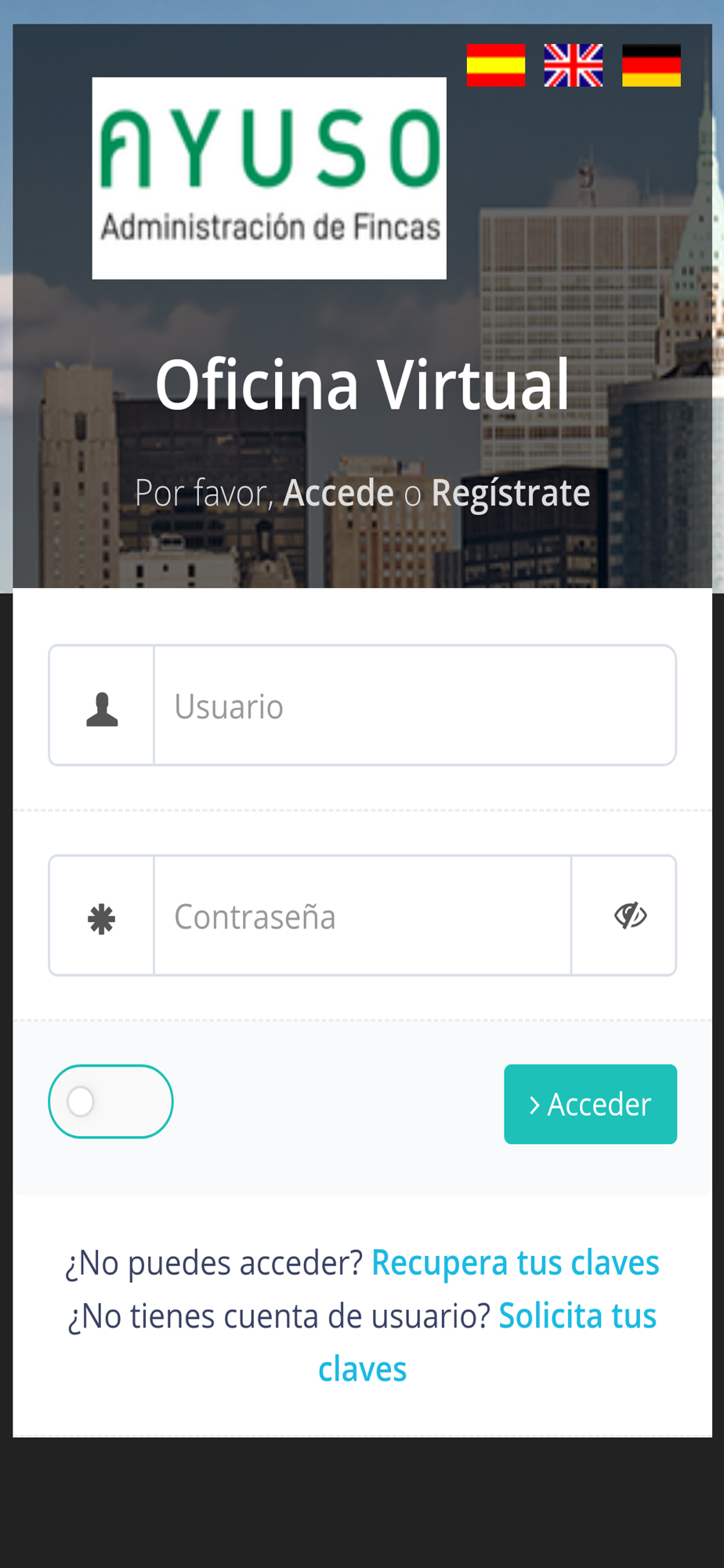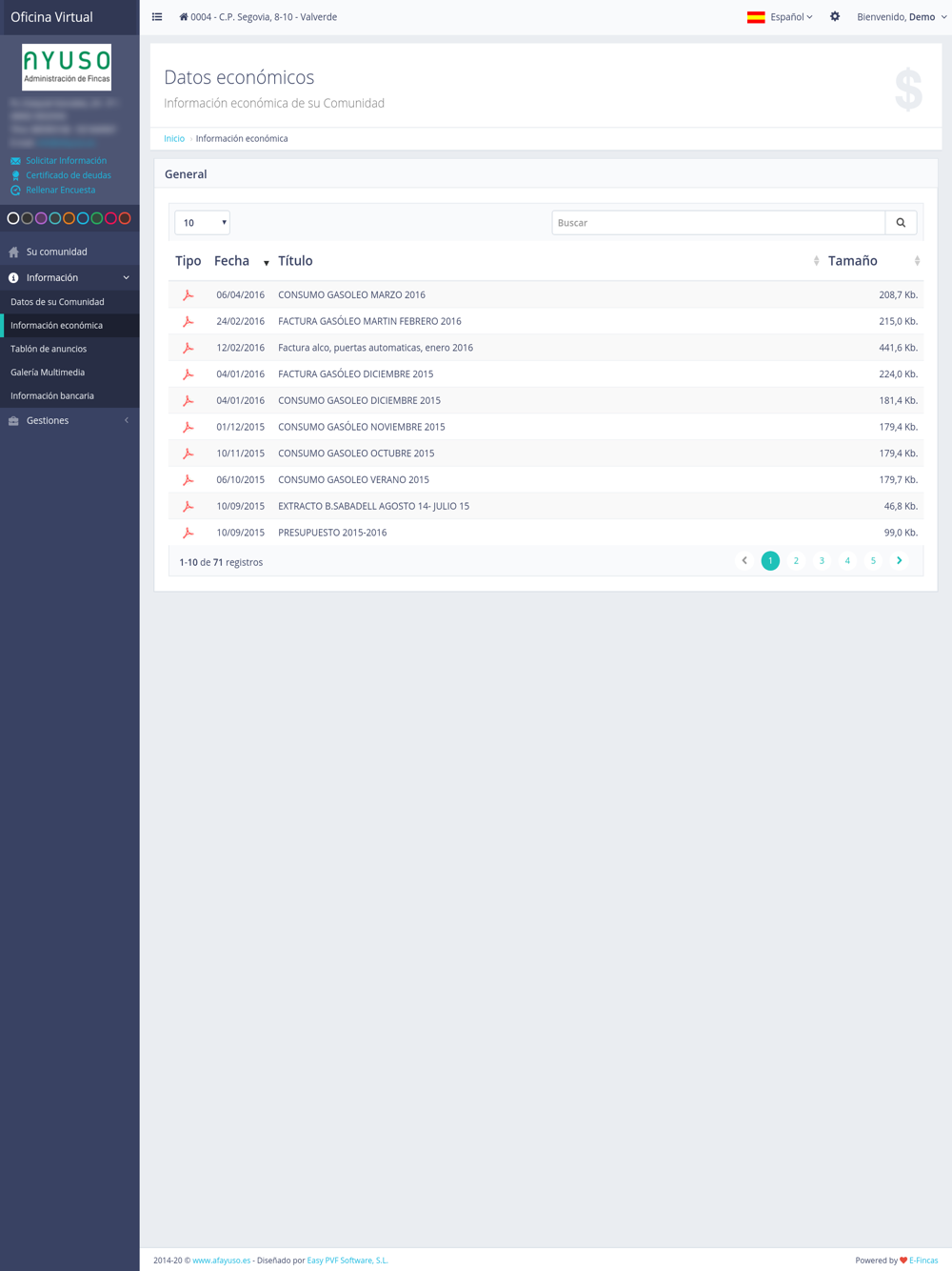 Consulte la información de su comunidad administrada por Ayuso: Administración de Fincas.. Con esta app podrá acceder a la información que Ayuso: Administración de Fincas pone a su disposición.