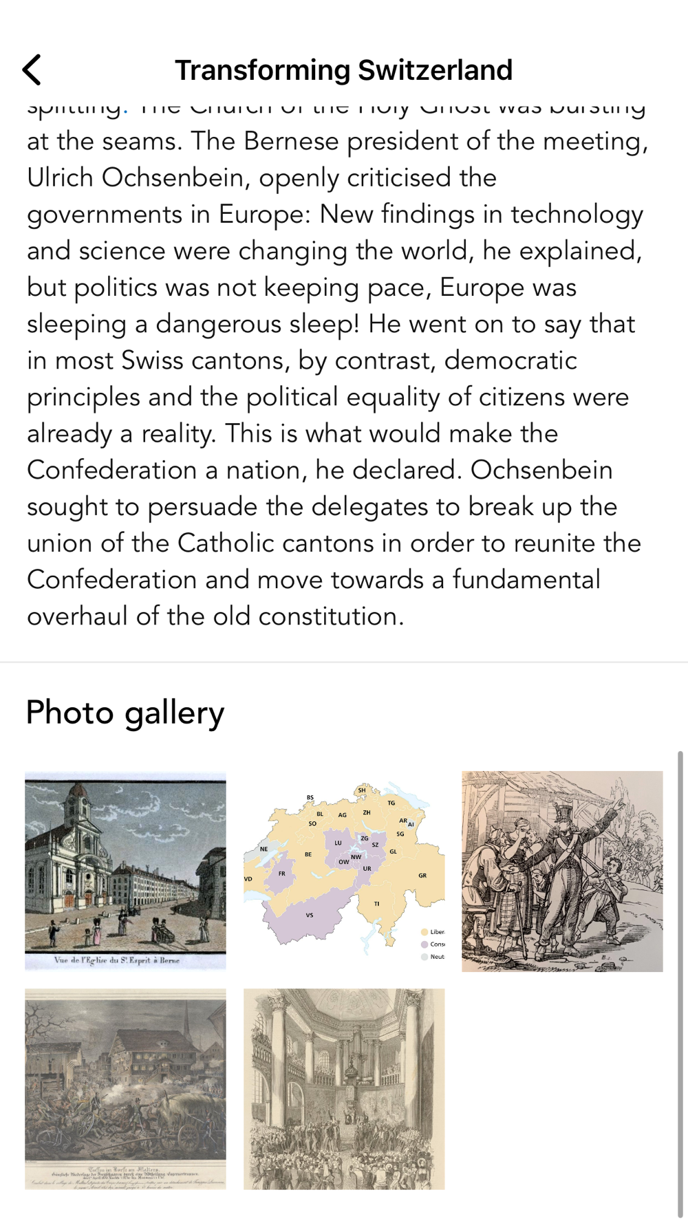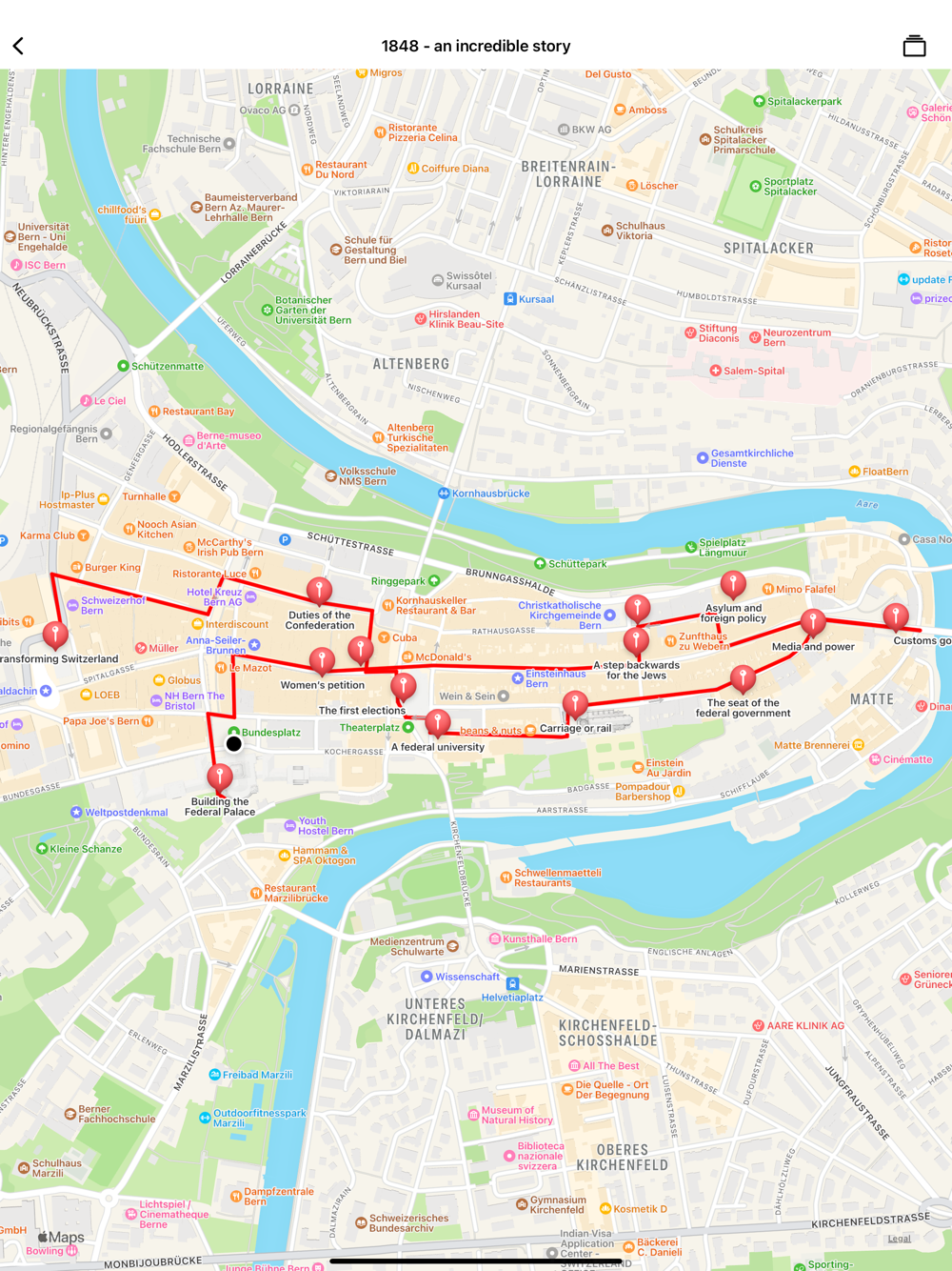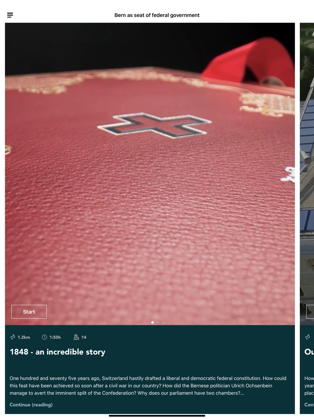 The guided tour of the Parliament Building provides interesting background information about the place where Swiss politics is conducted. The app takes you to all the important rooms in the building such as the chambers of the National Council and the Council of States, the lobby and the domed hall.