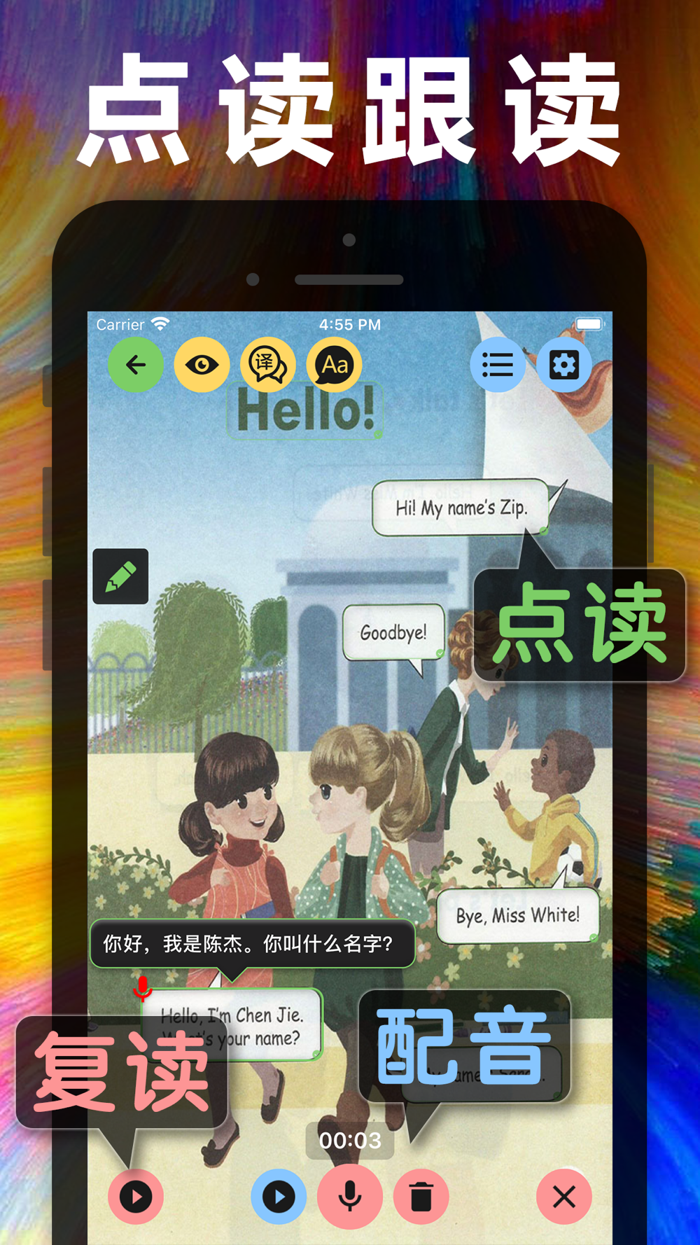 点读功能:点到哪里读哪里,点读翻译样样行,孩子跟着一起读,在轻松快乐中学英文。