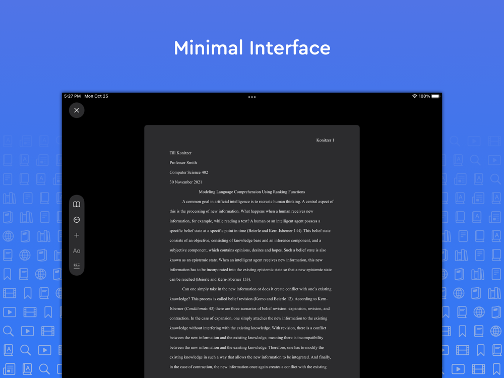 A simple interface helps you write without distractions. You know all those buttons in other word processors you never use? We got rid of those.