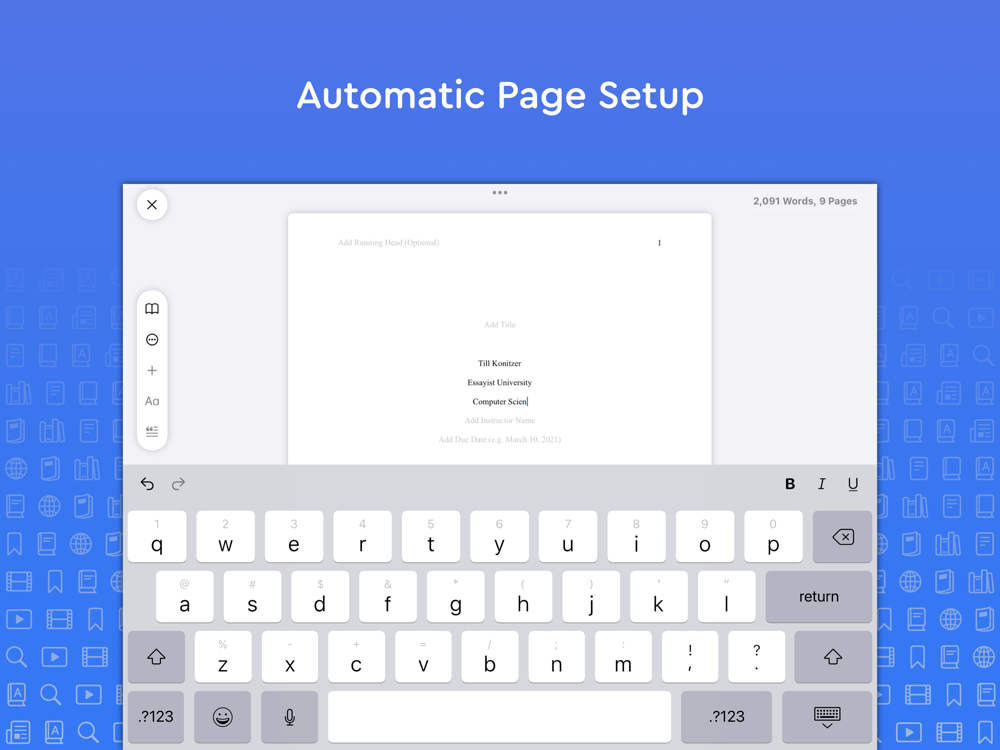 Essayist allows you to write APA, MLA, Chicago & Harvard Style essays with ease. From in-text citations and footnotes to references and page setup, Essayist takes care of everything. It greatly simplifies the academic writing process.