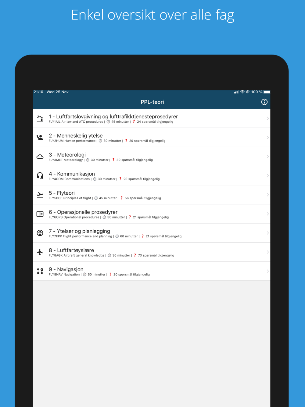 PPL-teori er en enkel app for å øve til teorieksamen for PPL.