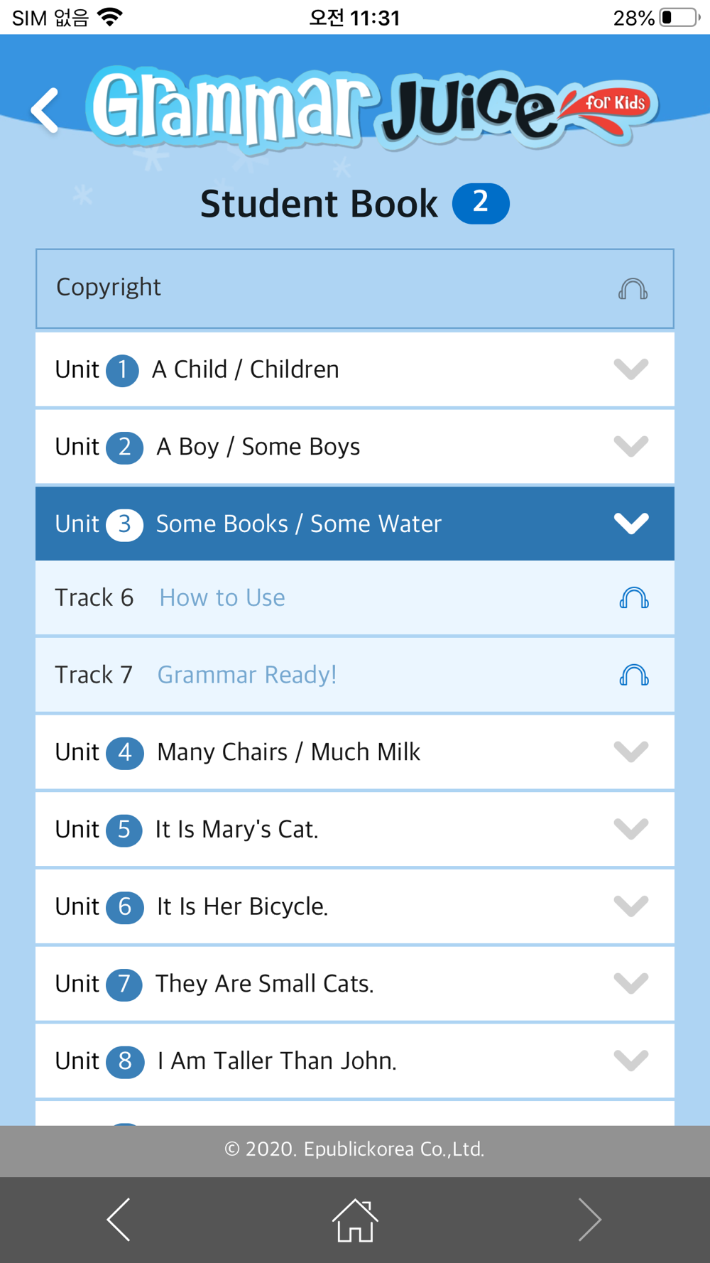 Grammar Juice for Kids app includes free audio files recorded by English native speakers for the warm-up activities.