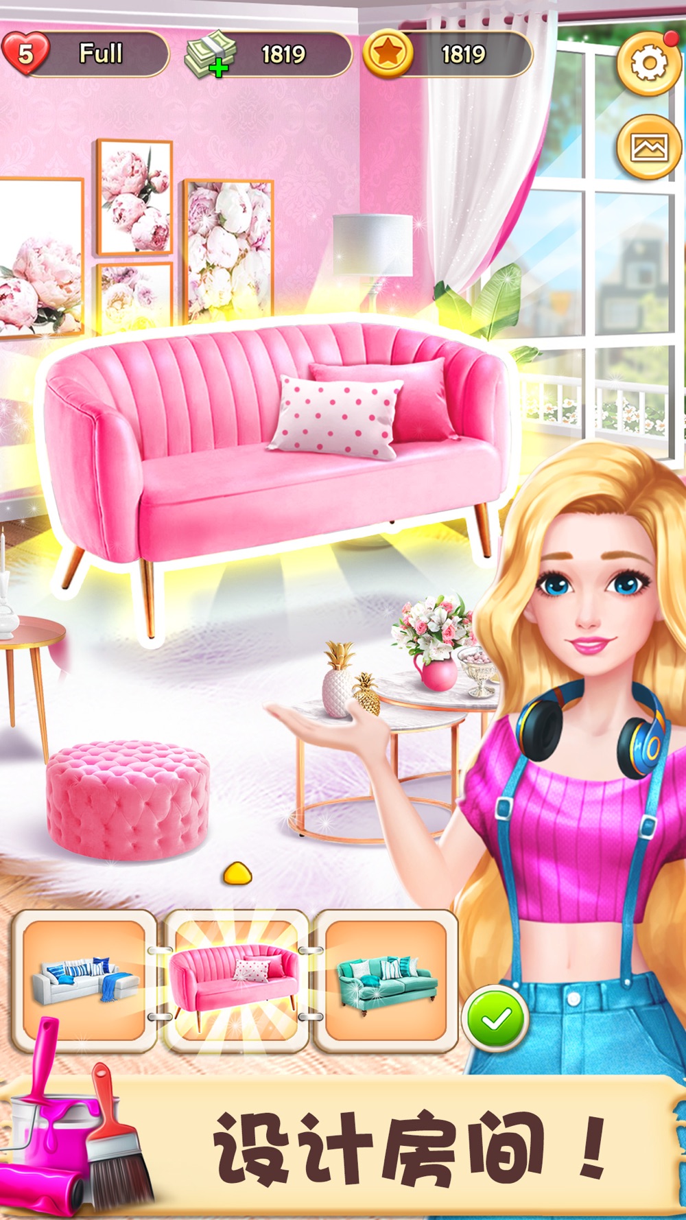 完成这些有趣又吸引人的三消关卡挑战,你将会获得金币解锁许多家具和家居配件。你的首要任务是装修你的客厅、卧室和厨房!在装修过程中,将会发什么有趣的故事呢?请继续关注更多内容!