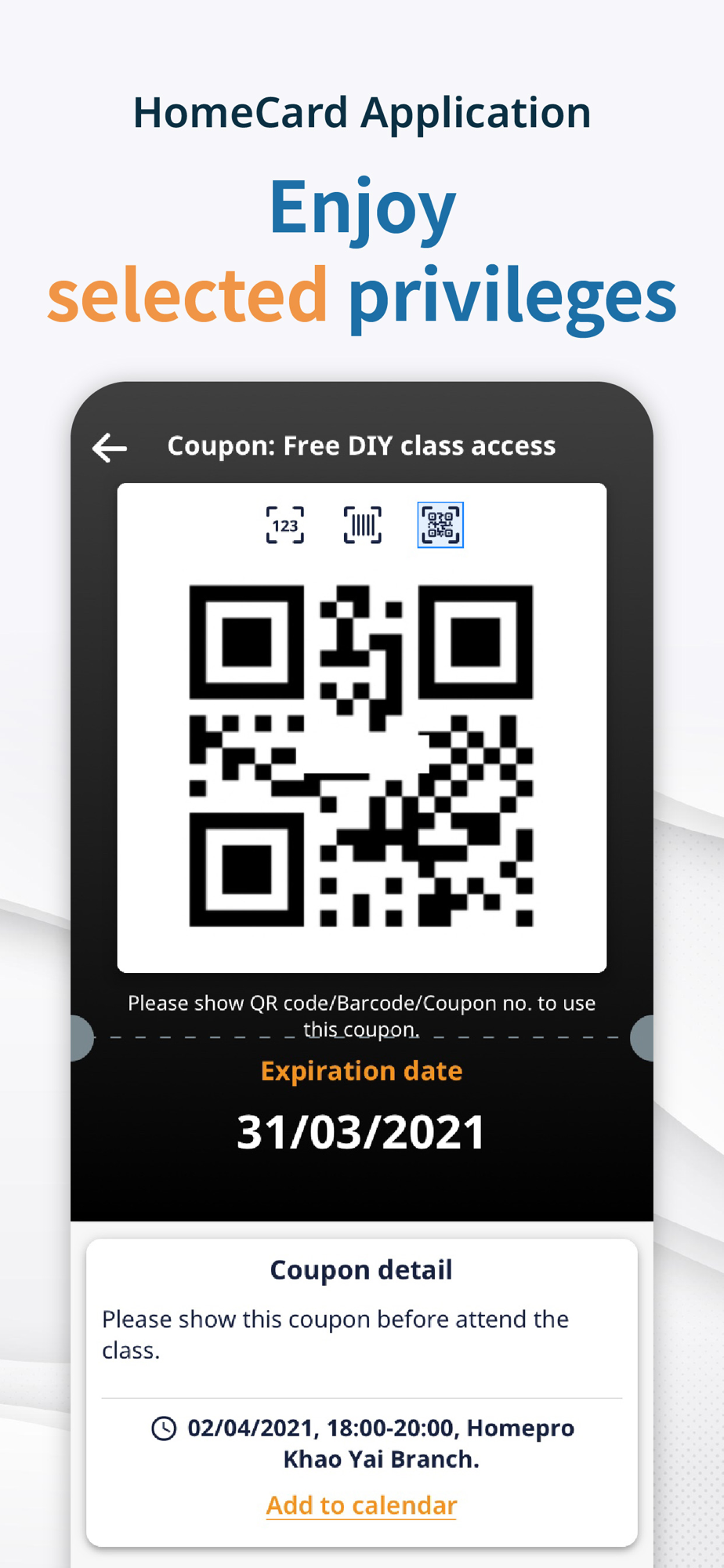 HomeCard application is an easier and more convenient way to enjoy various privileges and promotions from HomePro, MEGA HOME and participating partners from everywhere. It comes with many function created to match all kind of lifestyles