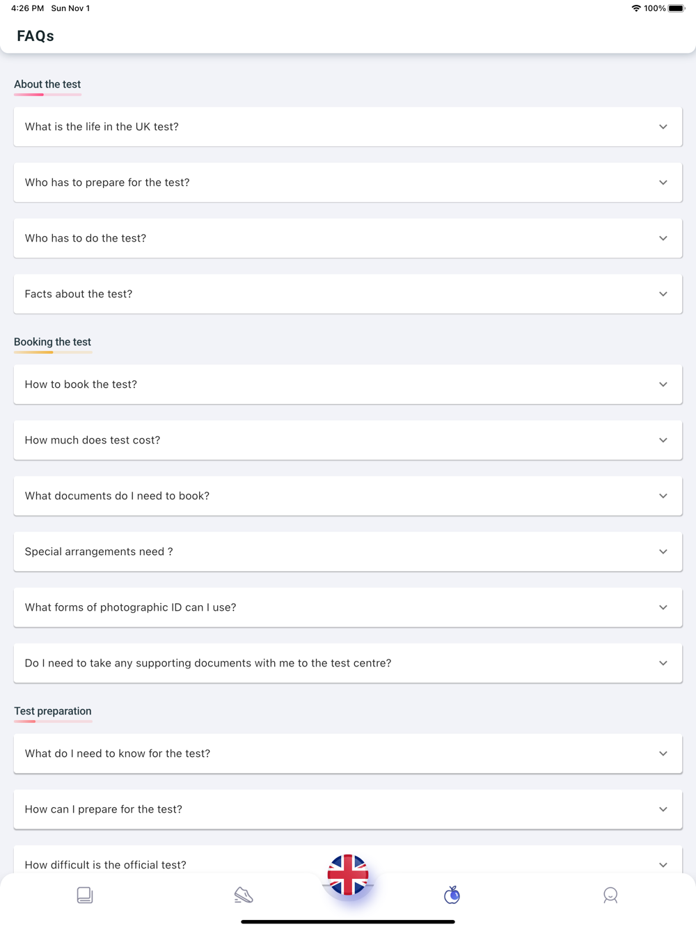We'll make sure that you are completely prepared for anything that may come up at the test center. The app contains several features to help you pass the test and bring you one step closer to becoming a British citizen.