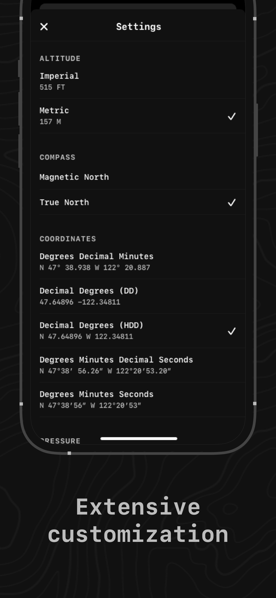 By upgrading to Cardinal PRO, you’ll gain access to all customisation options as well as super-accurate location data. Plus, it’s only a one-time, low cost in-app purchase — not a subscription — that’ll give you lifetime access.