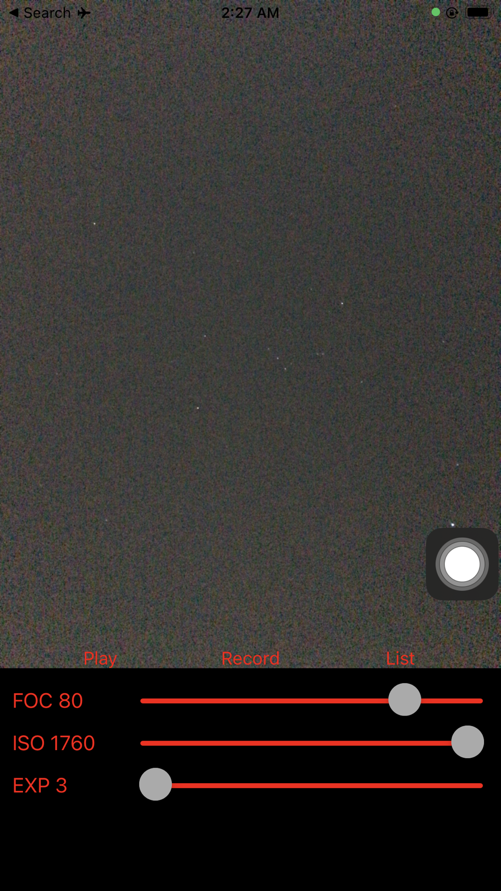 A simple app to capture video with manual settings such as ISO, focus and Exposure. It is designed to take video of deep sky objects such as M31 Andromeda (see screen capture video), M42 Orion Nebula and planets. After recorded, the app can send the video to laptop or ImageCam for onphone stacking.