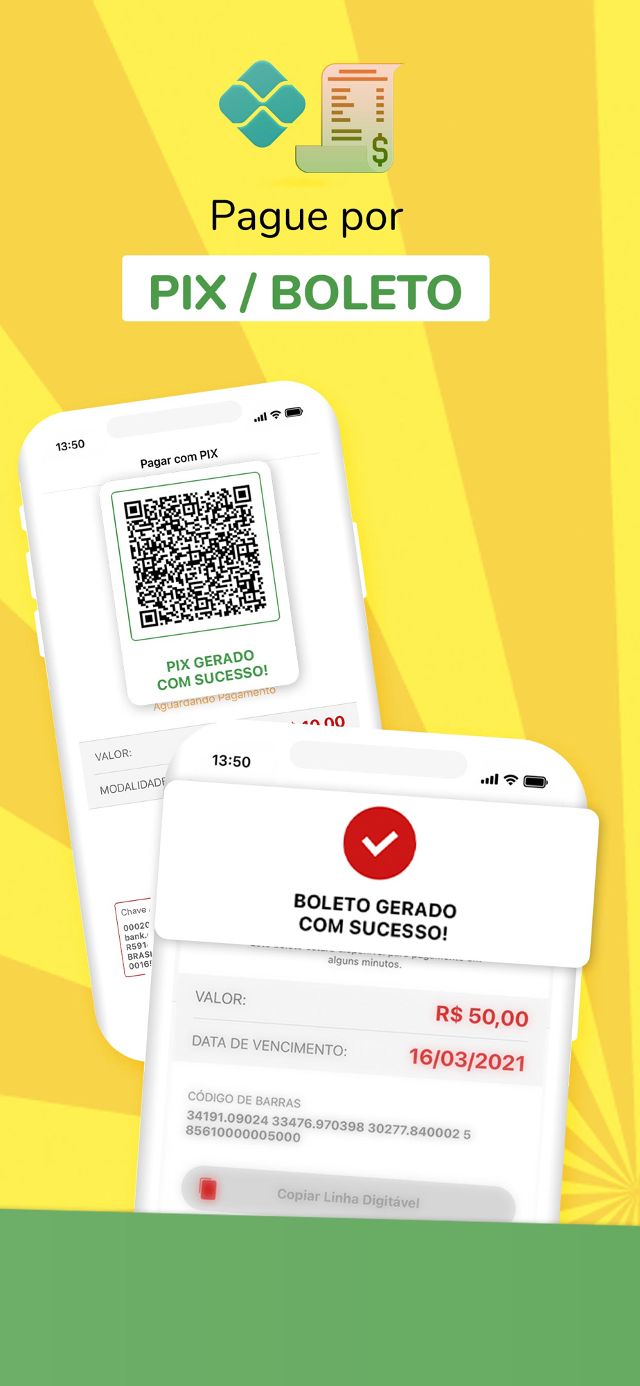 - Praticidade para pagar com Pix, cartão ou saldo da carteira;