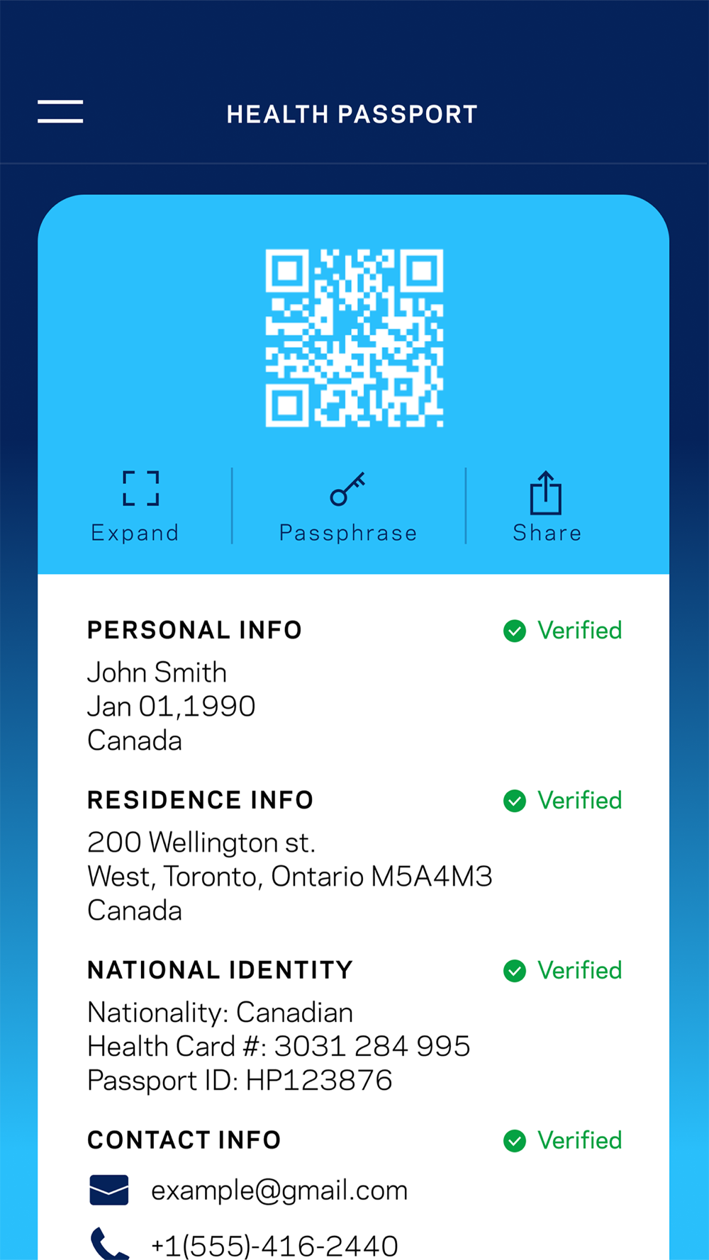 The International Health Passport is used as a Health Identity. Testing labs use this identity card to enter test results for viruses, vaccines and as immunity records. The App acts in conjunction with an ecosystem, which will allow industries, such as Travel and Tourism, to open up in the near future and prevent the economies from shutting down due to viral outbreaks.