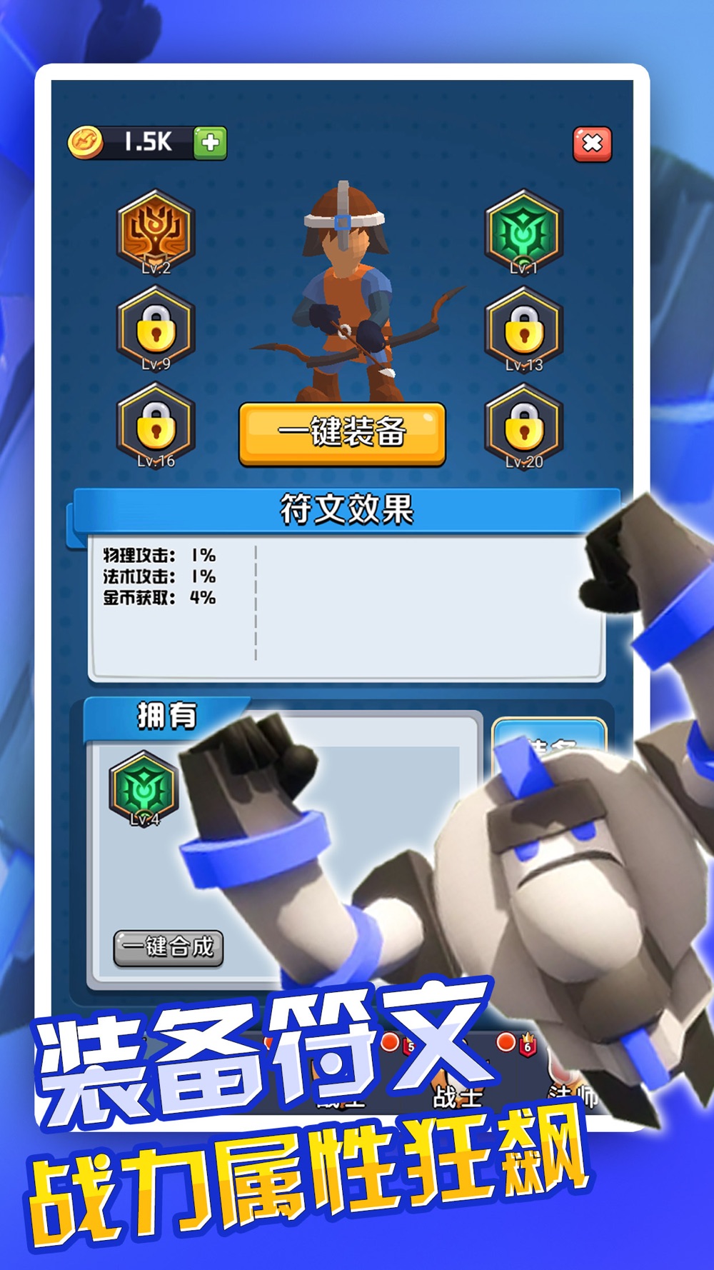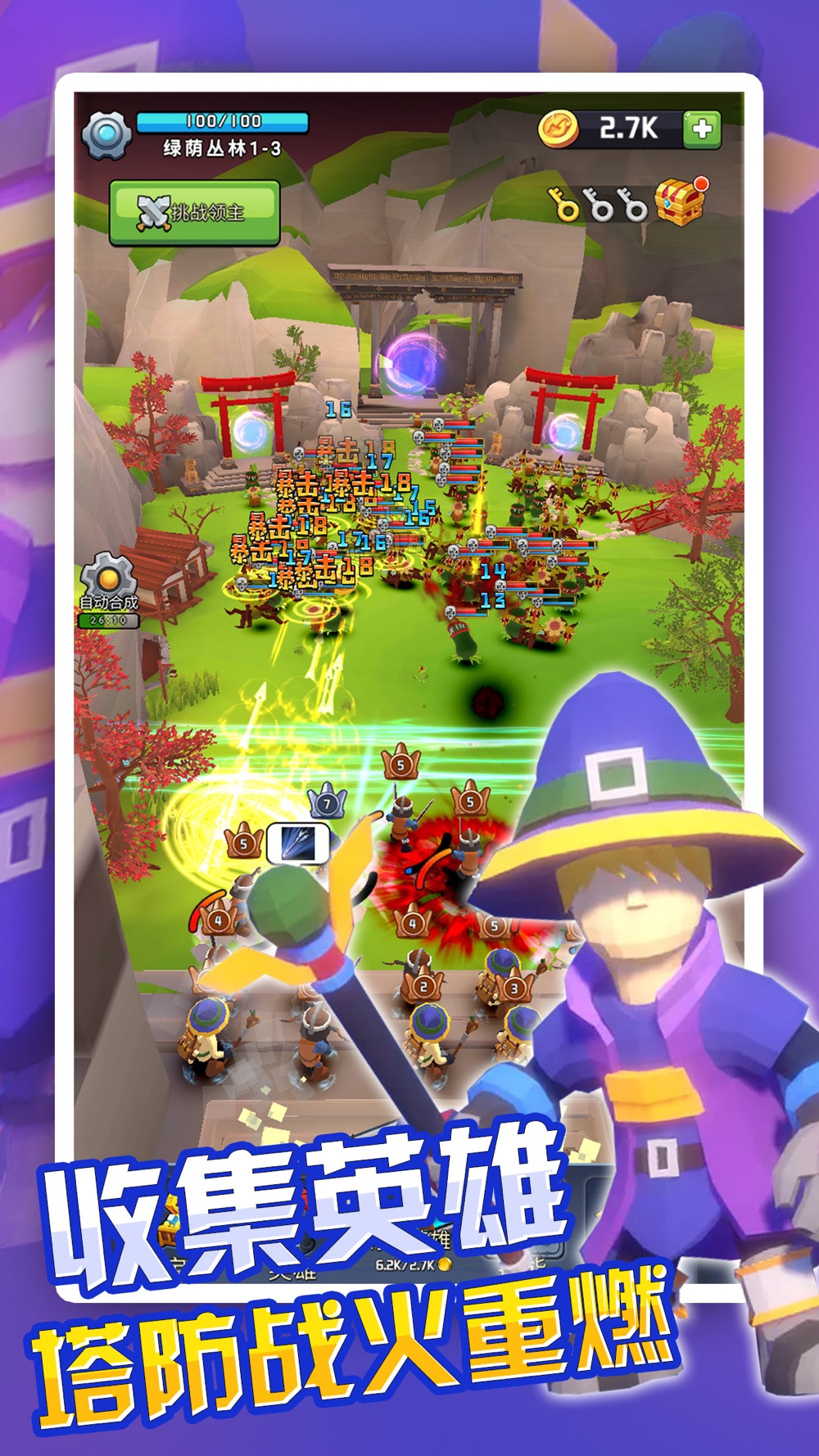 无需繁琐的操作,只需要简单的合成升级你的英雄就可以体验超爽的塔防乐趣。