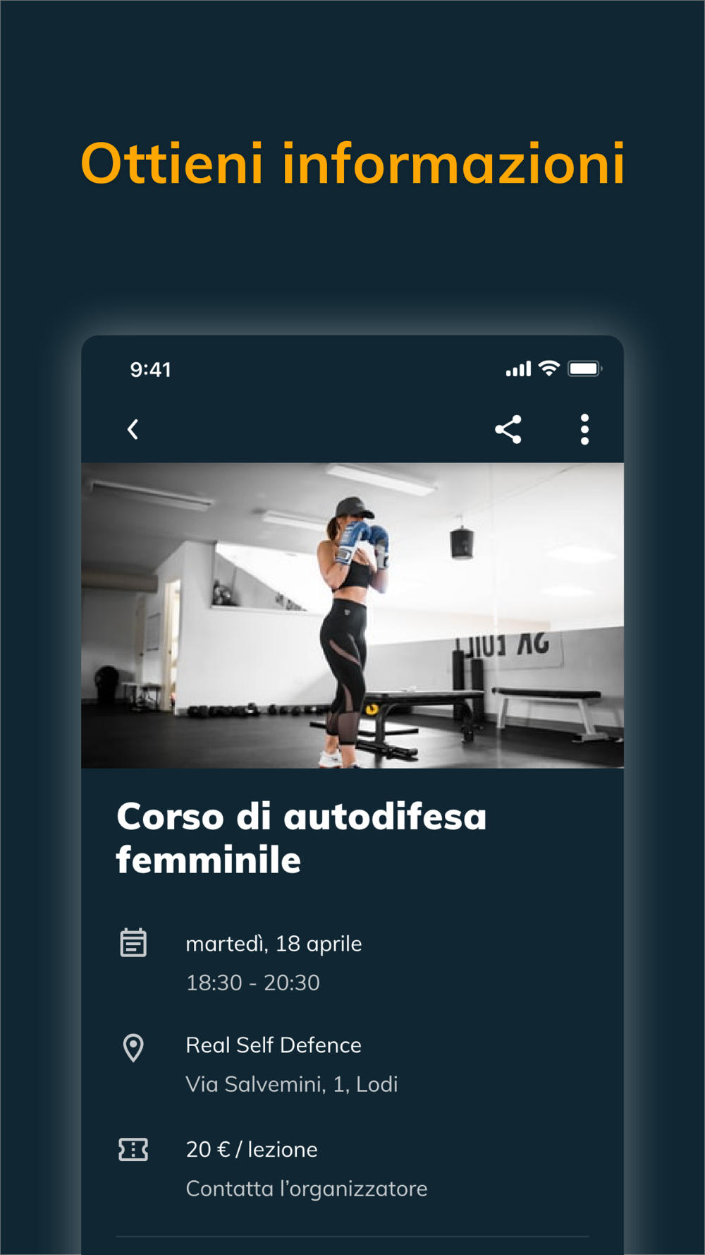 - Raggiungere facilmente il luogo dell’evento, grazie al facile collegamento con le tue app di navigazione