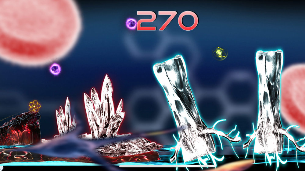 - Use your double-jump ability traverse the microscopic science-themed landscape filled with neutrons, protons, and electron particles