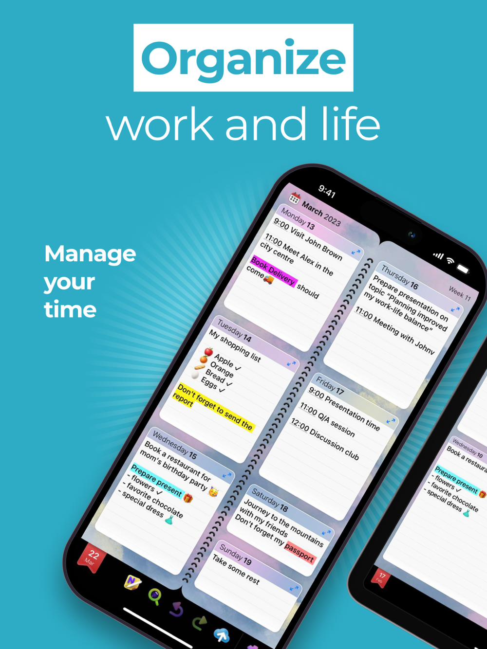 Pocket Planner is designed to combine a notepad, planner, reminder, calendar, habit tracker, and to-do list into one simple application - both for your private life and for work. It will replace your usual paper organizer of the week with its absolutely identical digital copy, so you can easily make and keep track of your plans and achieve your goals.