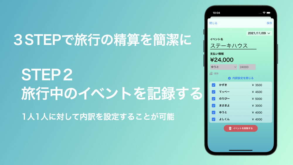 これら3つの情報を入力するだけで、精算する時に最小回数でのやりとりを提案します。