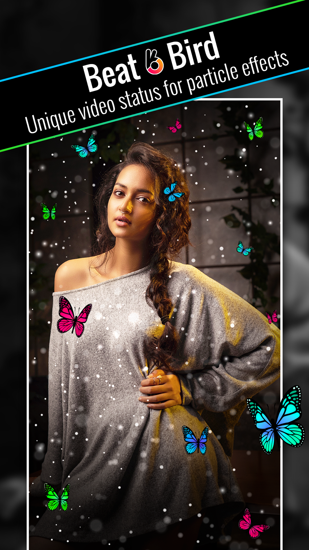 You can create animated Photo Video Maker with Beat wise particle effects with your favorite song track. In this app we provide facilities for video making, we provide various language video templates to en user. This "BeatBird - MusicBit VideoMaker" app make videos of your own photo easily.