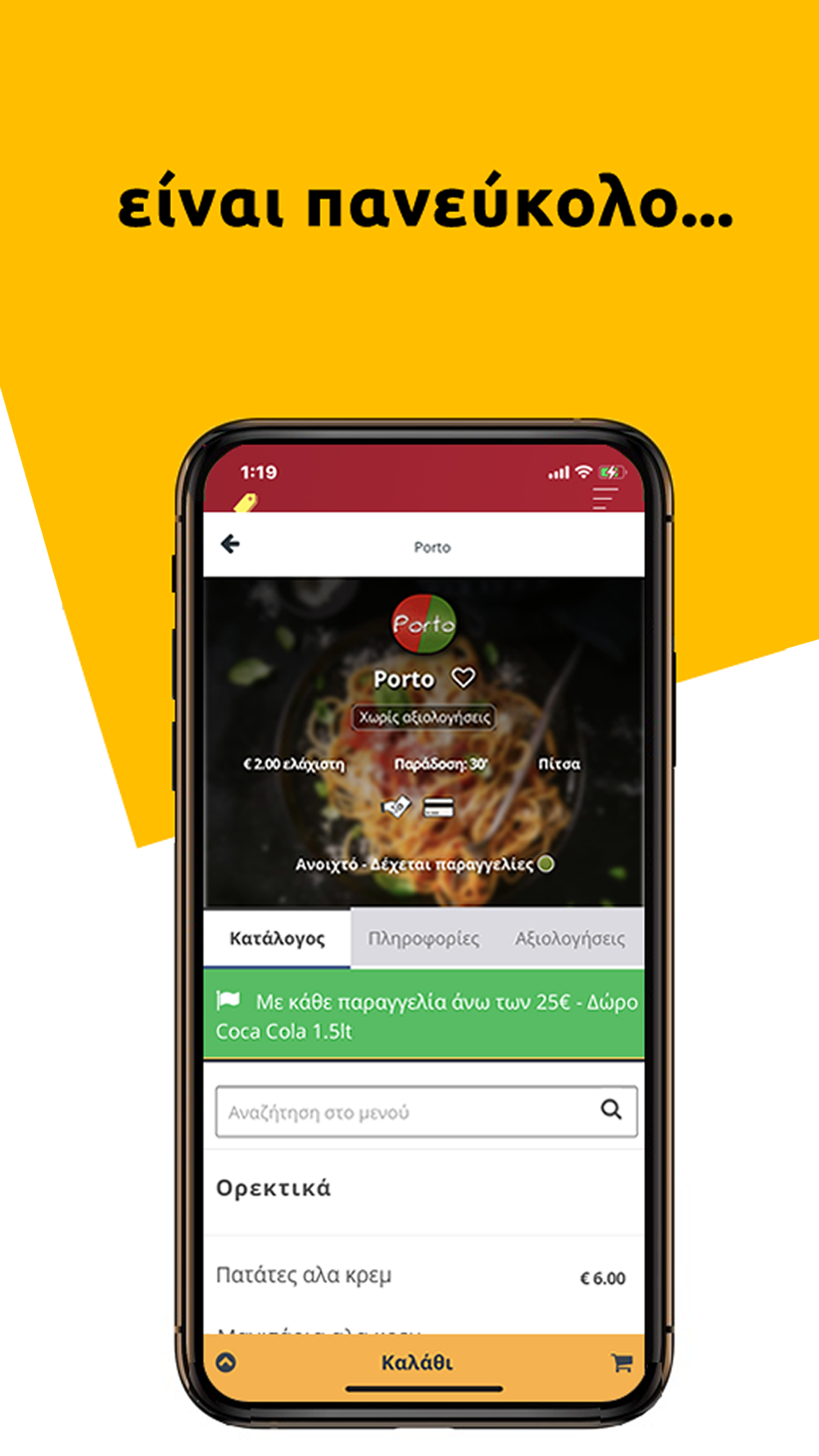 Κατέβασε την εφαρμογή ή μπες στο site, φτιάξε την παραγγελία σου και δες τη να έρχεται στη πόρτα σου σε λίγα μόλις λεπτά.