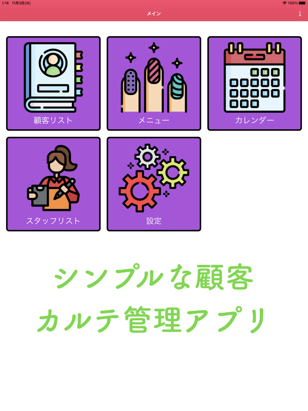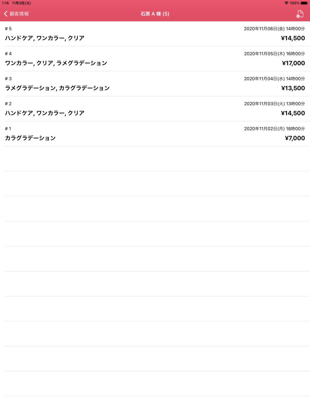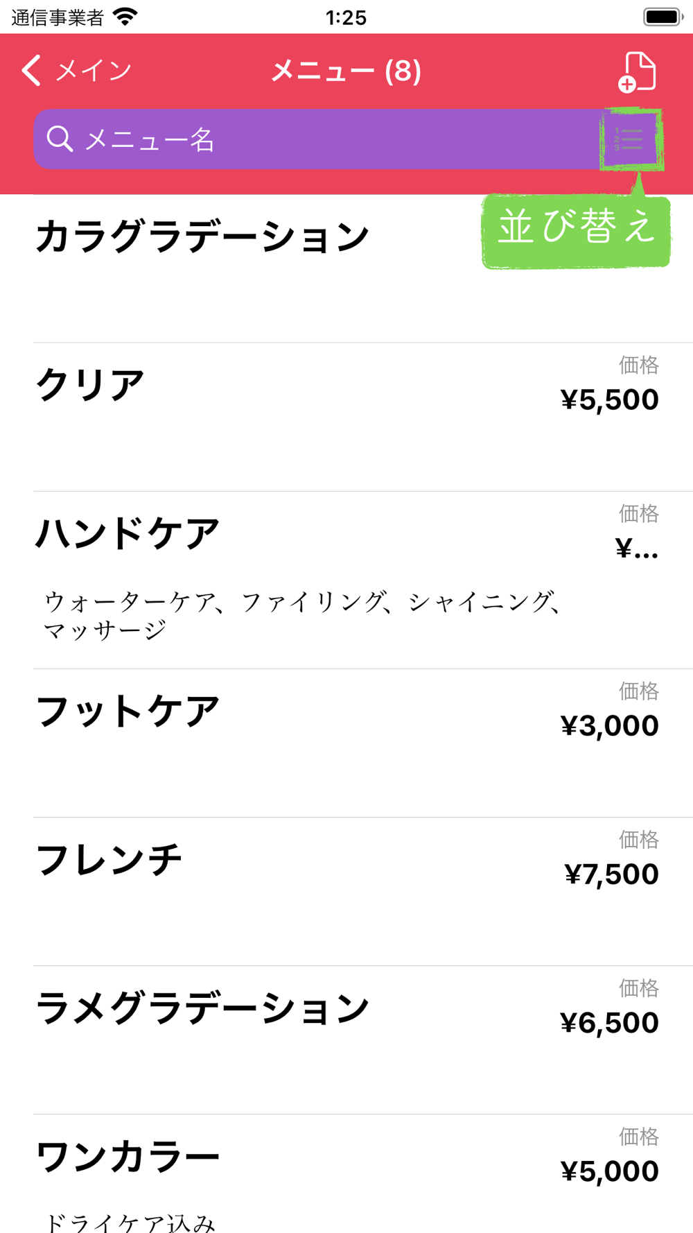 ・顧客、メニュー、スタップリスト:データが3件以上登録されている場合、検索バーを表示 ・スタッフ:スタッフ色設定(iOS14.0以上) ・設定:カレンダーイベント色設定(iOS14.0以上)