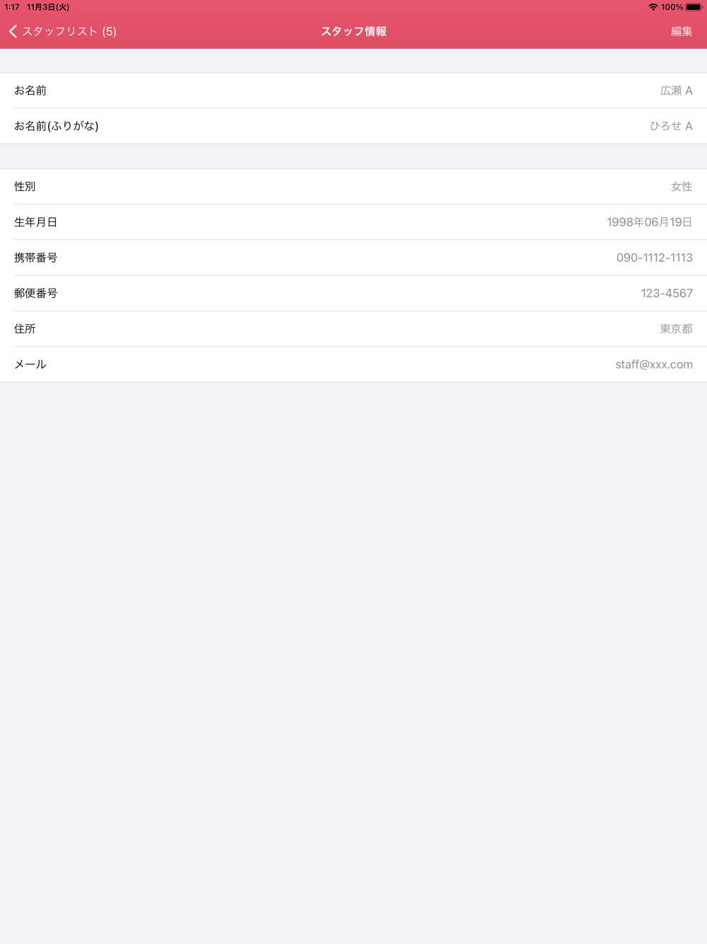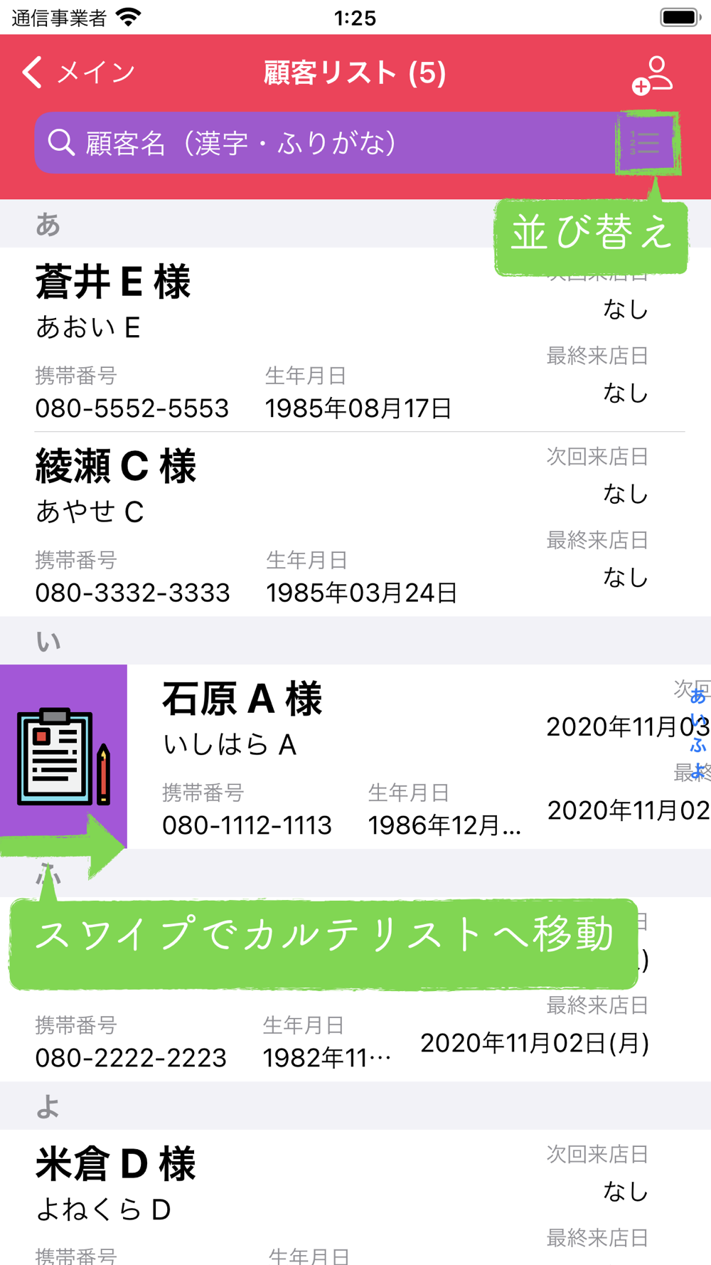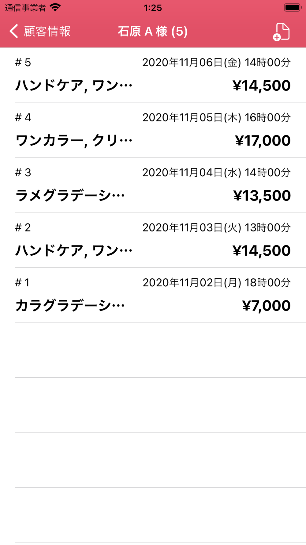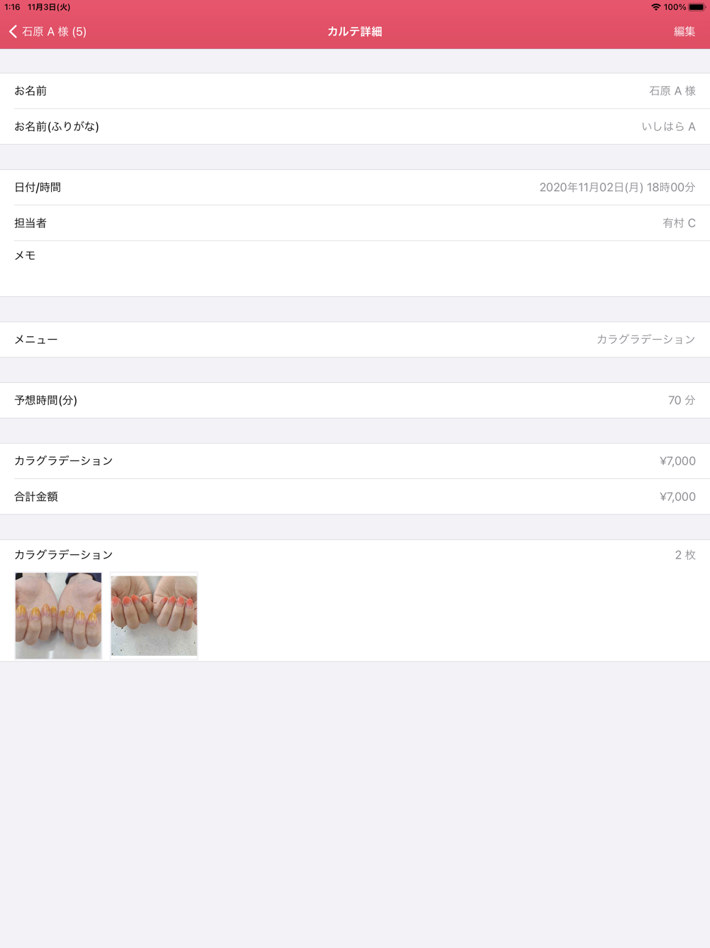 ・顧客、メニュー、スタップリスト:データが3件以上登録されている場合、検索バーを表示 ・スタッフ:スタッフ色設定(iOS14.0以上) ・設定:カレンダーイベント色設定(iOS14.0以上)