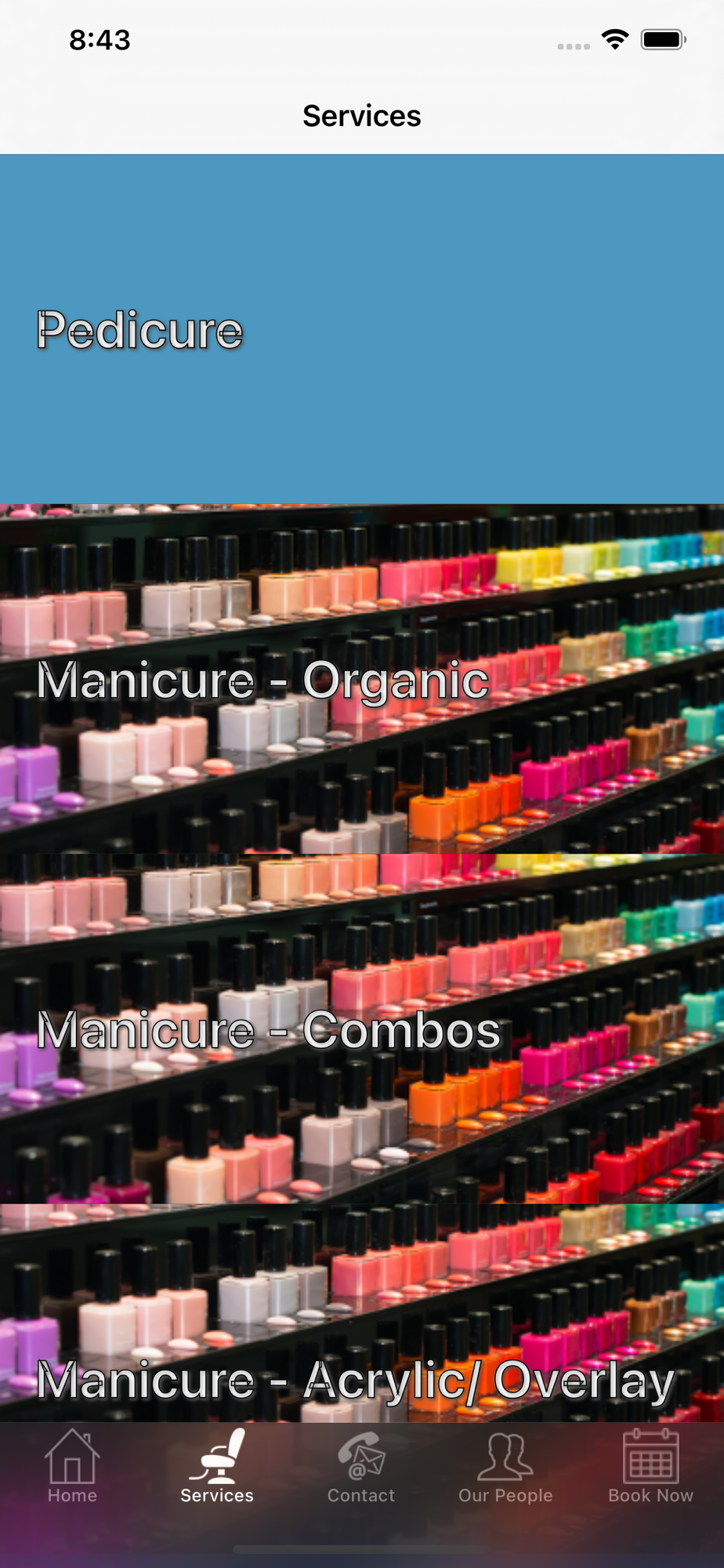 4. Services Menu: Browse the services we offer with times and prices.