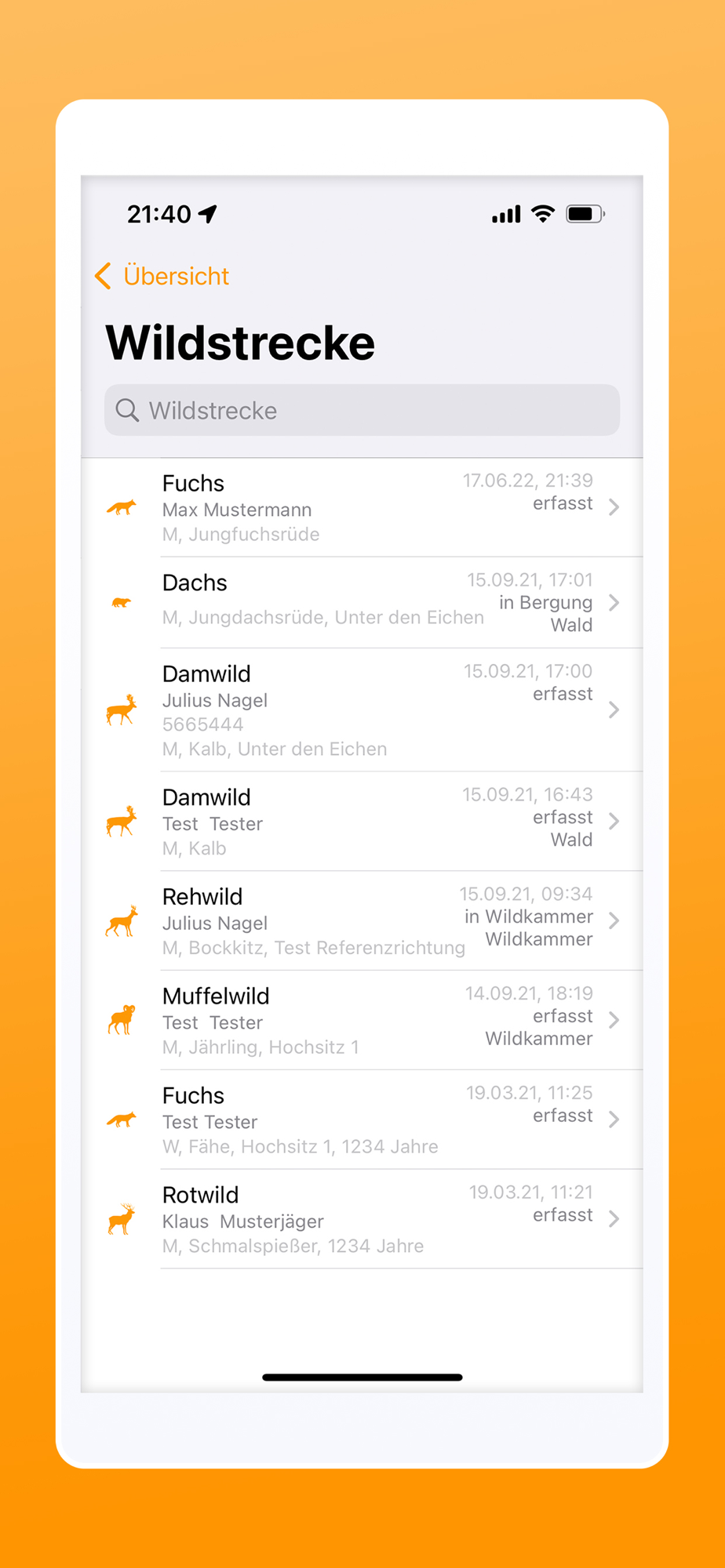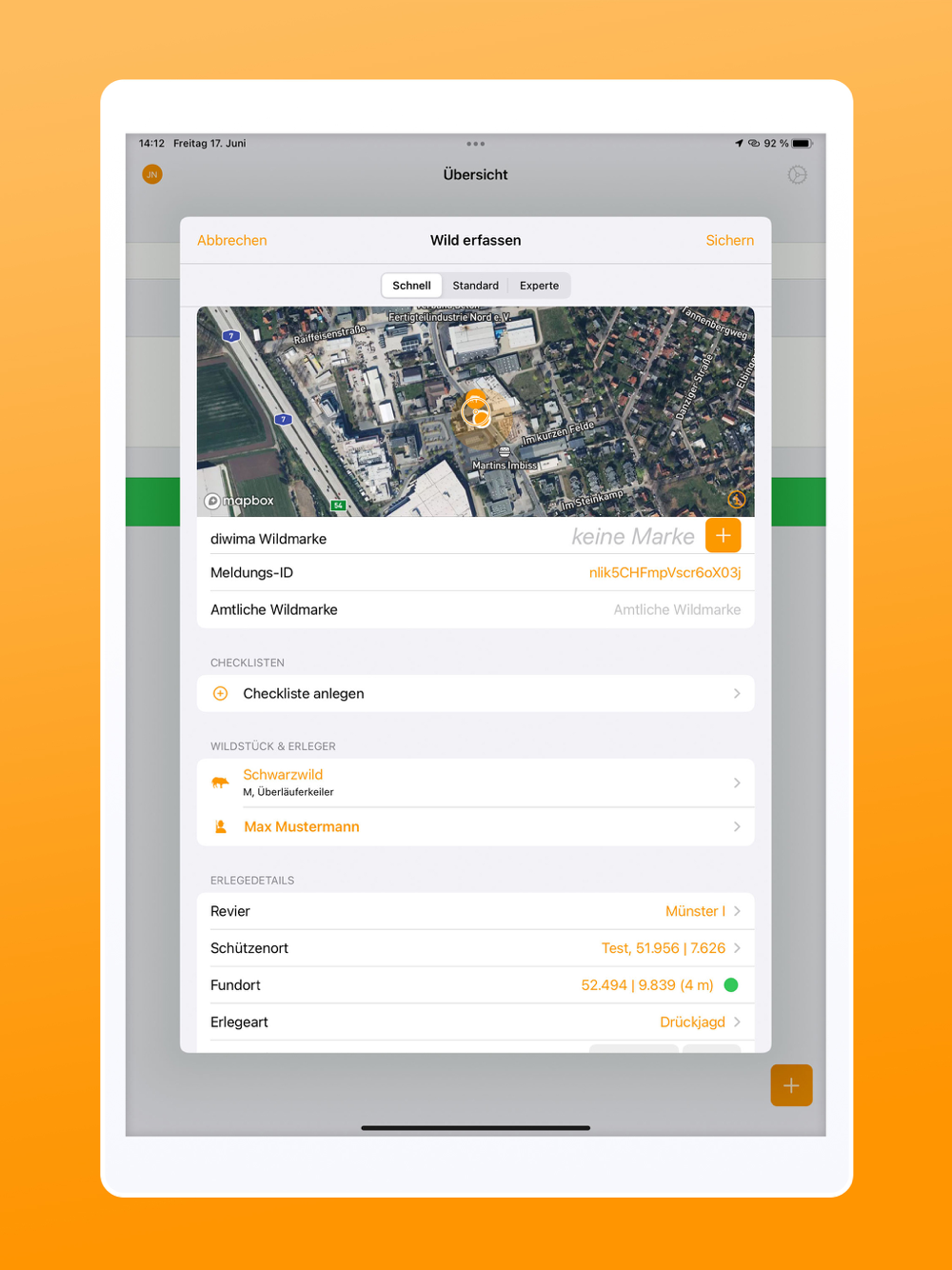 Say goodbye to paperwork - with the diwima® Ansteller app, you have everything you need to record all the important information about the game range right at the kill site. In order to clearly assign the game, you can, for example, select the hunter and stand from lists that you can maintain in the diwima® Revier Cockpit. They can also add coordinates to the location where the game was found to facilitate the recovery process.