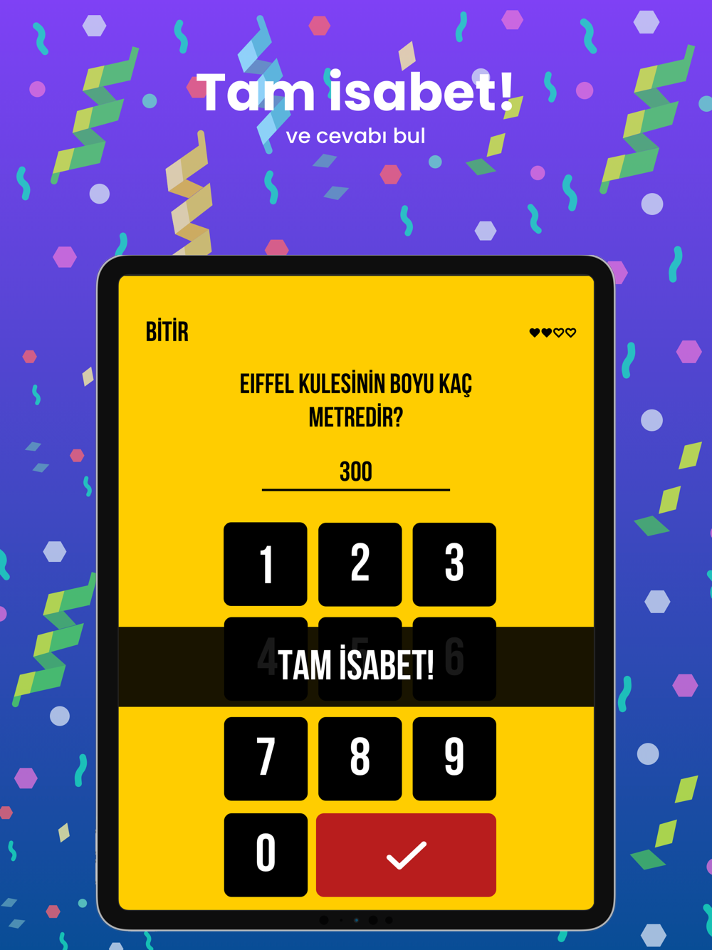 • Uygulama içerisinde yanıtları sayılardan oluşan sorular karşınıza çıkar