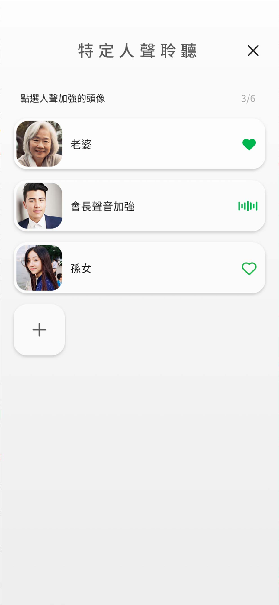 對象的聲紋儲存於應用程式中。之後選擇對象後,能清晰的聽到對方講話聲