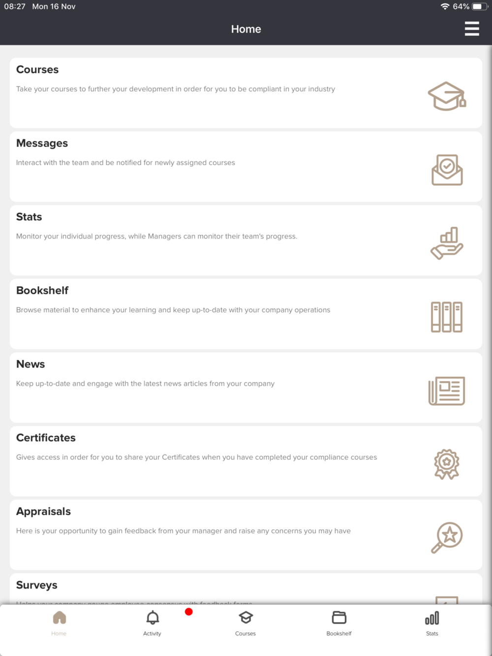 The Cru Holdings App will allow you to complete your e-learning, keep in touch with colleagues and stay up to date with company news.