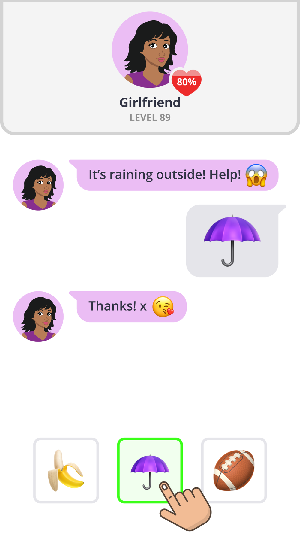 Brand new imagination game in which you need to chat with friends, girlfriends, parents, bosses and more through emojis by associations. Think and find the idea of each puzzle. Just tap on the answer from a list of different emojis. If you correctly answer all the responses, you pass the level. Harder than you think!