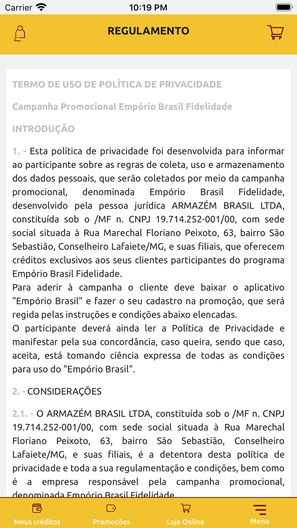 Funciona assim: você baixa o app Empório Brasil e faz seu cadastro e pronto! Você já estará apto a participar desse programa e ganhar créditos em suas compras nas lojas do Supermercado Brasil.