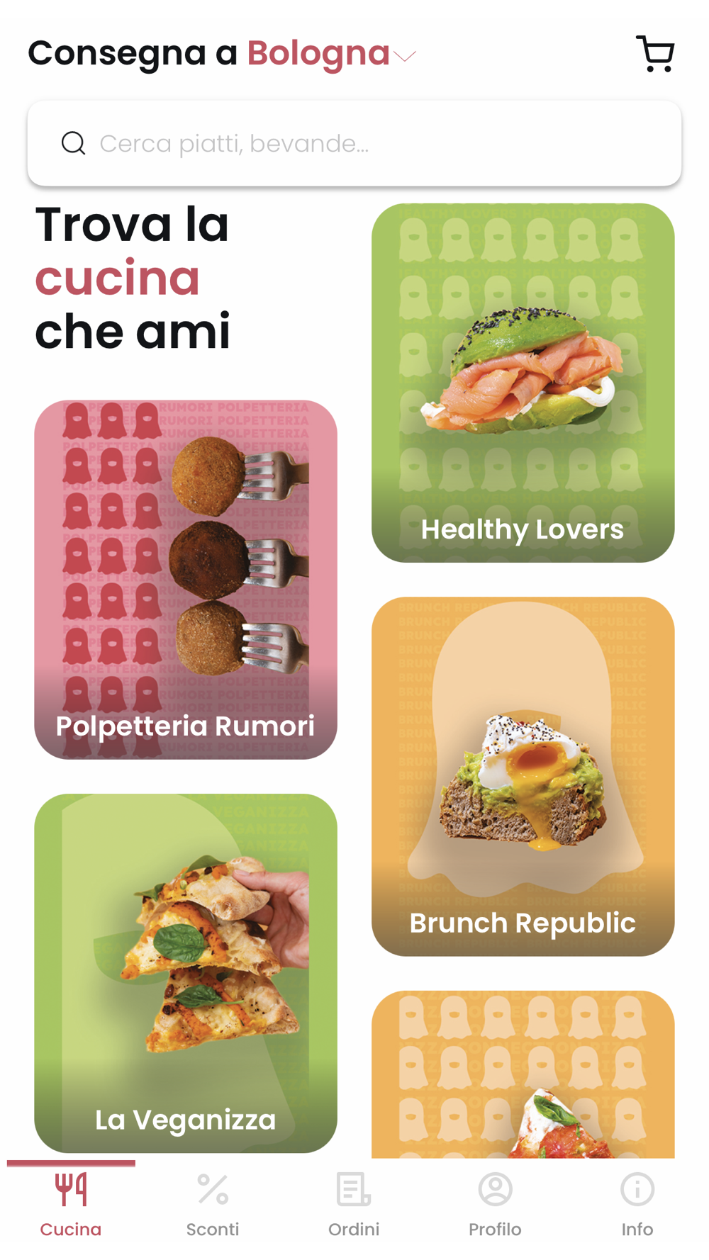 Le cucine attualmente disponibili sono un brand di cucina americana, uno di cucina italiana, uno di ravioli orientali e due di pizze.