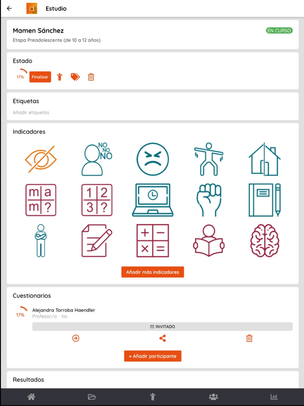 La herramienta con la que padres y profesores conocen y mejoran las dificultades de aprendizaje y desarrollo en sus hijos y alumnos de 2 a 18 años. Crea tu cuenta, inicia el estudio, selecciona los indicadores a detectar o descartar, descarga el resultado y las pautas de orientación.