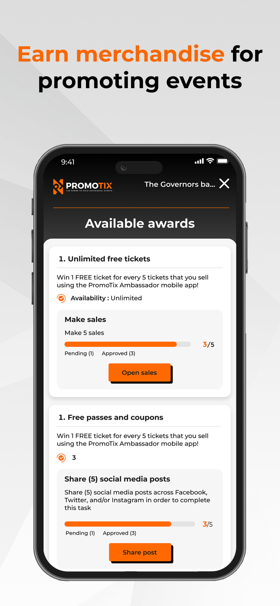PromoTix Ambassador is a mobile app for music enthusiasts to earn free tickets to music festivals, concerts, and music venues, as well as cash, artist merchandise and other rewards for helping event creators promote upcoming shows.
