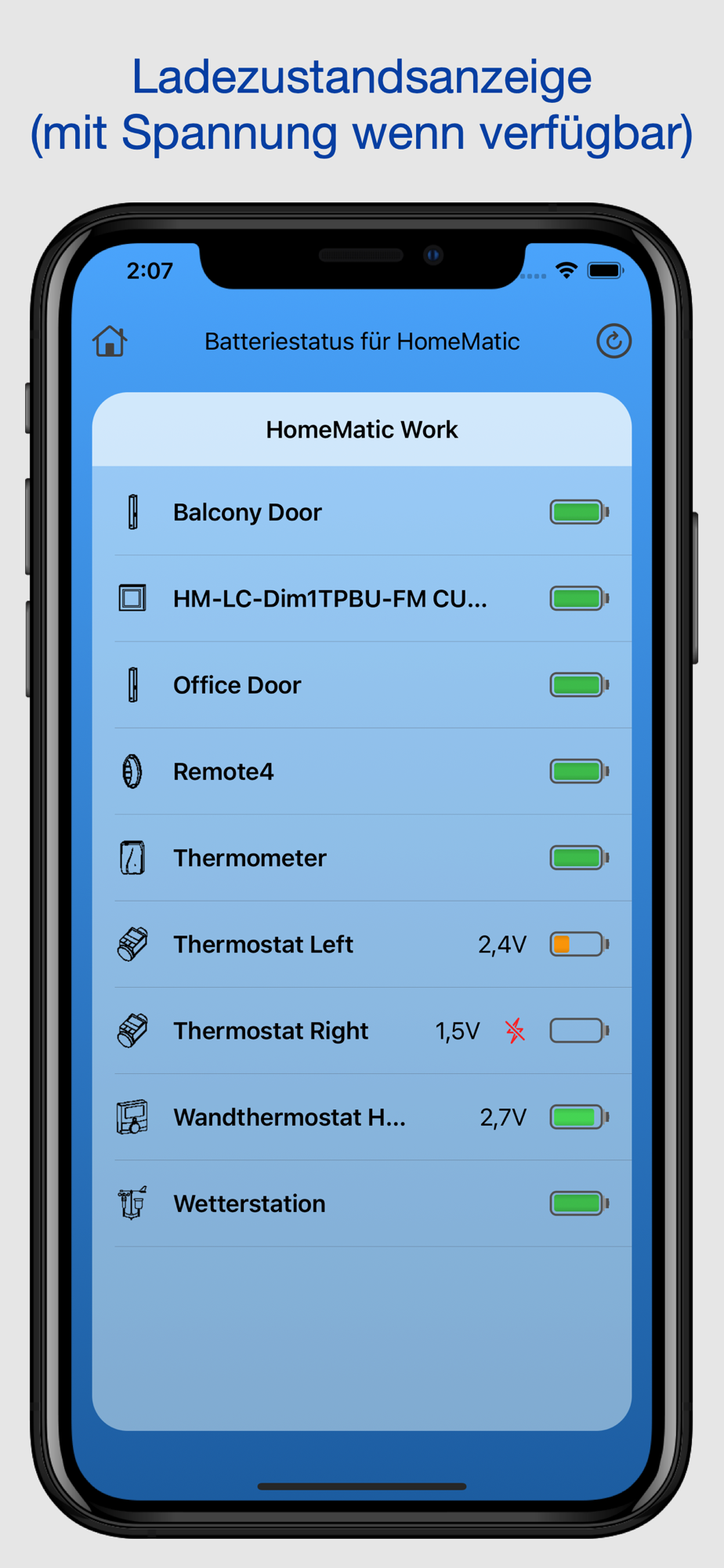 Battery Status for HomeMatic is a very simple application to report the status of your battery powered HomeMatic home automation devices.