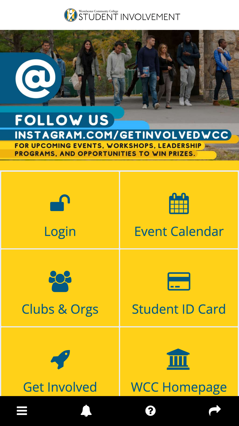 Use the WCC Get Involved App to learn about our 60+ clubs and organizations, find out what events are happening on campus, and how YOU can Get Involved! Stay connected to our campus community by networking with your peers, joining campus groups, quickly accessing and RSVP’ing to club/org events, and more!