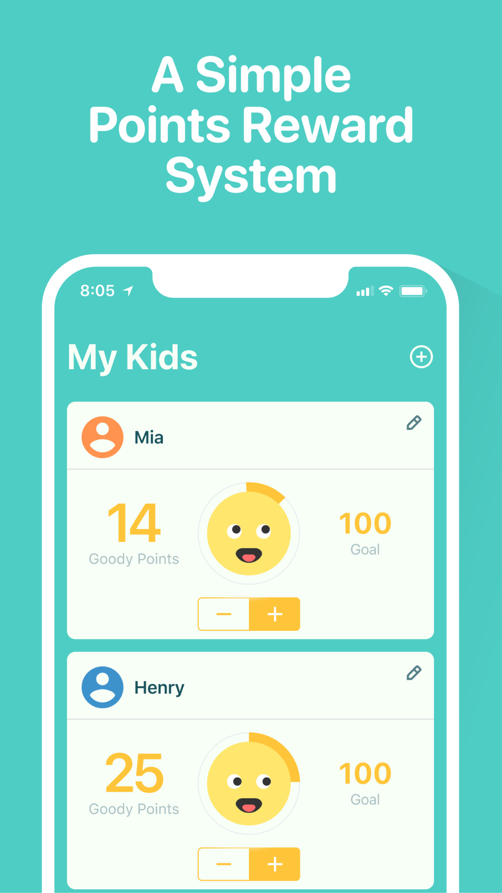 When used well, reward systems can be one of the best ways to change a child's behavior and build sound habits. Goody Points provides a simple way to keep score as you work with your child to make good choices. How and why you add or subtract points is up to you. Guide them towards any goal, and reward them as you see fit!