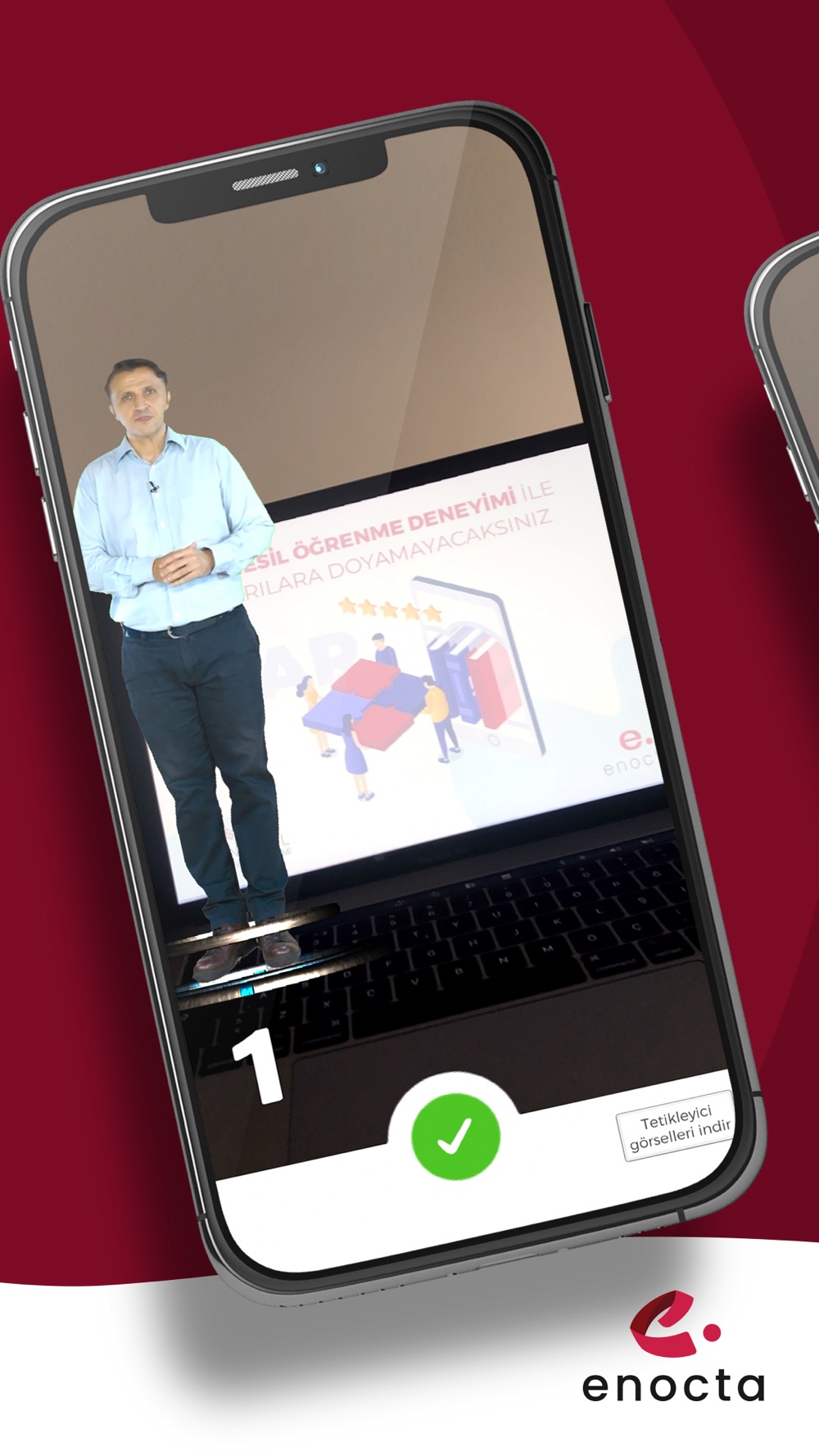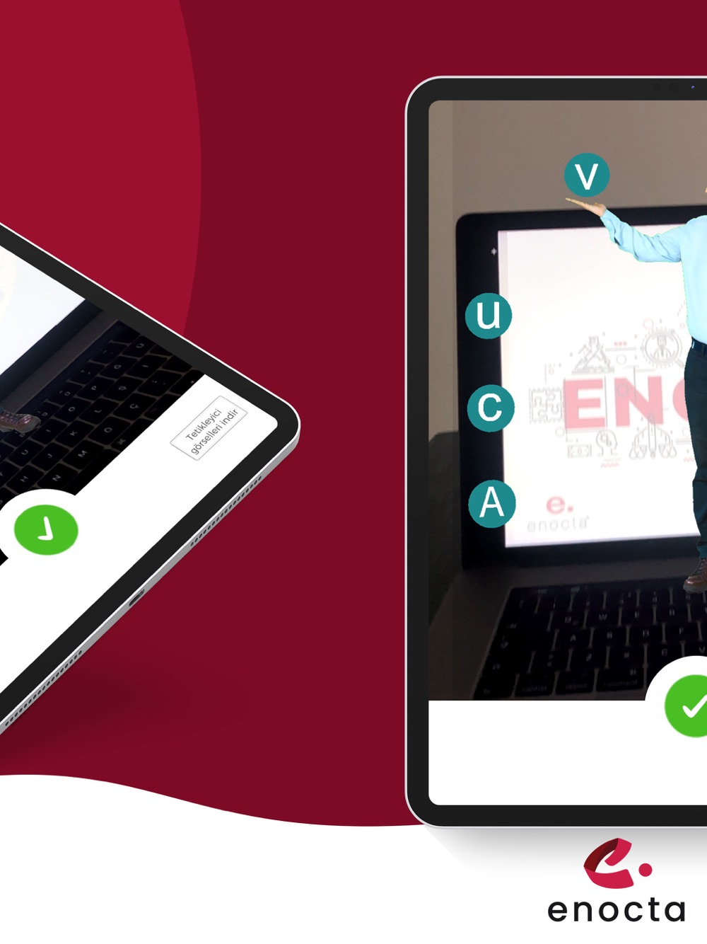 Enocta olarak yeni nesil öğrenme trendlerinden Artırılmış Gerçeklik teknolojilerini eğitimlerin zenginleştirilmesinde, karma öğrenme tasarımlarında son derece değerli bir fırsat görüyor ve bu öğrenme deneyimini yeni uygulamamızla sizlere sunuyoruz. Eğitim sürecinde gerçek dünyadan kopmadan, nesneler ve yüzeyler üzerinde farklı formatlarda, ses, video, animasyon, 3B model, metin vb. ek bilgilere nasıl ulaşabileceğinizi deneyimleyebilirsiniz. İndireceğiniz bu uygulama ile AR formatındaki tüm içeriklerimize erişiminiz mümkün olacaktır.