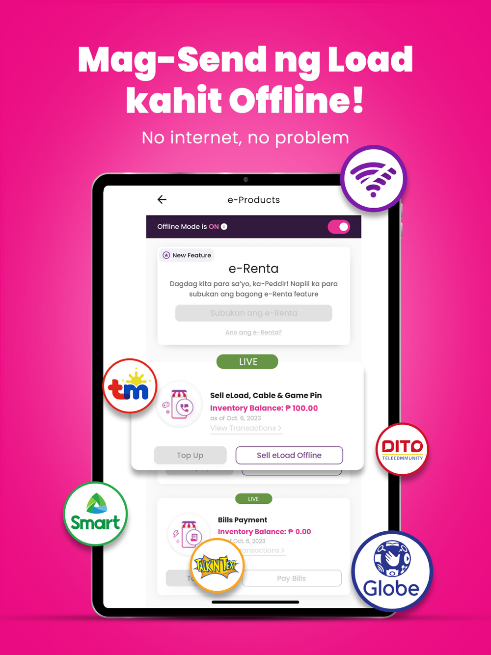 Earn more by sending e-load, game top ups, cables and pay bills for your customers. Peddlr's offline loading lets you send load even with no internet to ensure uninterrupted transactions.
