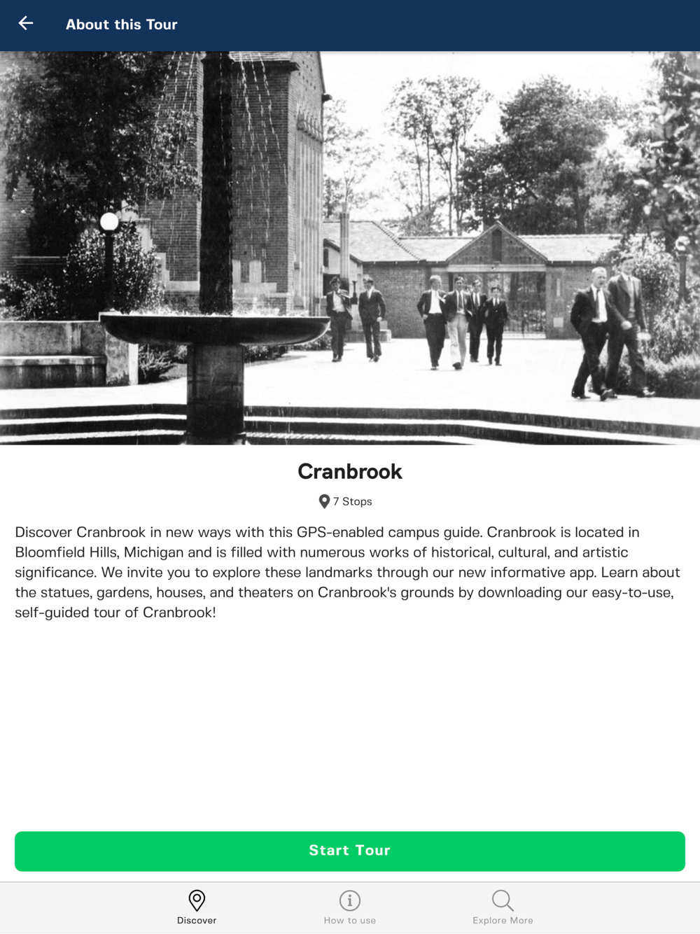 Discover Cranbrook in new ways with this GPS-enabled campus guide. Cranbrook is located in Bloomfield Hills, Michigan and is filled with numerous works of historical, cultural, and artistic significance. We invite you to explore these landmarks through our new informative app. Learn about the statues, gardens, houses, and theaters on Cranbrook's grounds by downloading our easy-to-use, self-guided tour of Cranbrook!