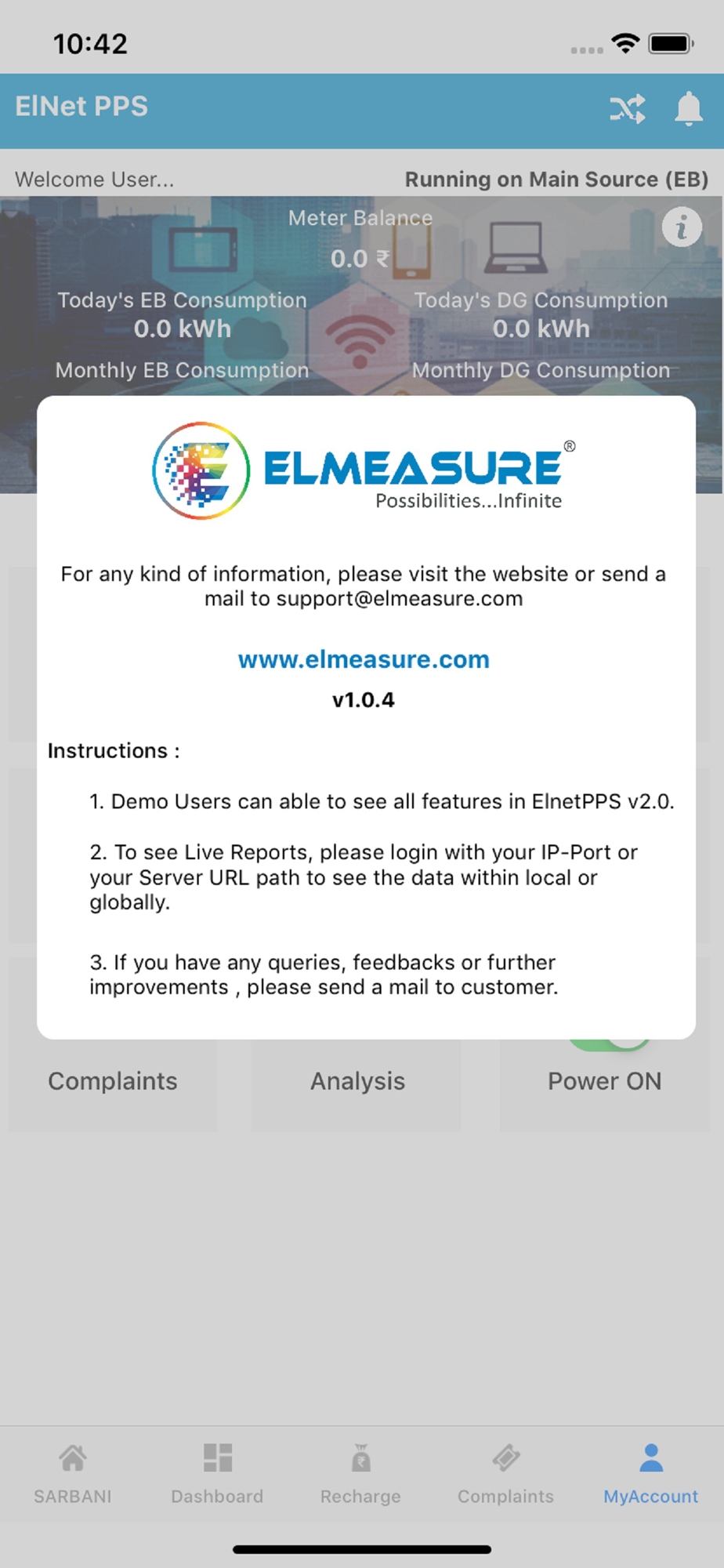 ELNet PPS is a Pre-paid service app for recharging Meter which is connected to both Grid and DG supply. ELNet PPS App is an incredibly convenient and easy way to view and manage the recharges from the mobile phone. This user interface facilitates the interaction between humans and Mobile. Within this app user can view all Recharge history, Complaint, Consumption Trend, Real time load, Device status etc.